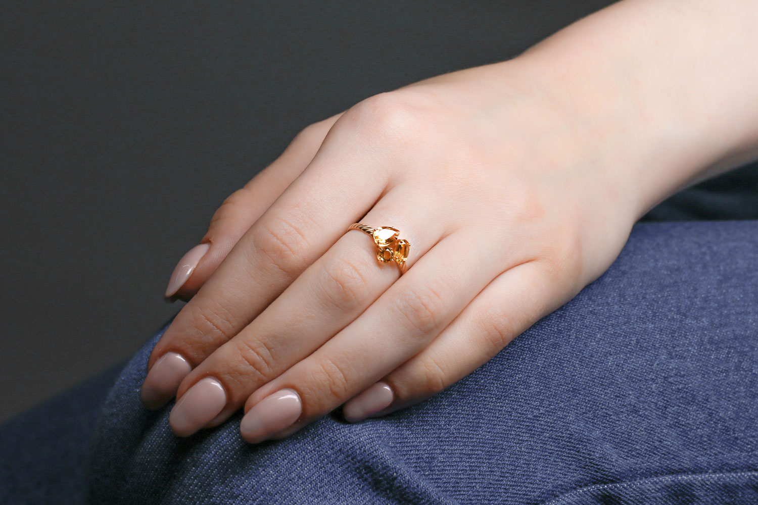 Мастера компании NEWGOLD, приложив всё свое мастерство и искусство, создали для Вас на нашем собственном производстве Кольцо из красного золота с 3 цитринами.