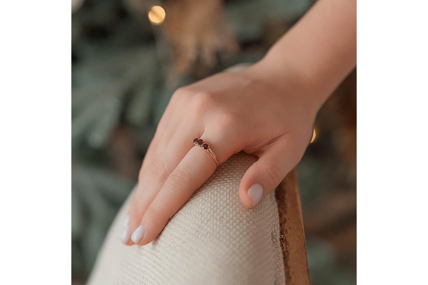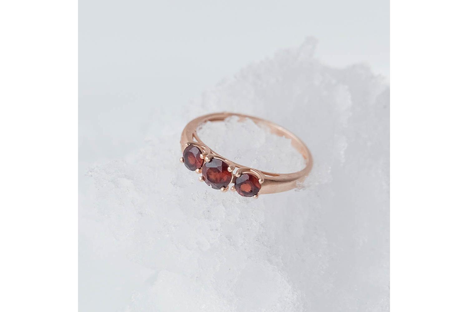 Изысканное, винтажное, вечернее и стильное кольцо с тремя камнями, изготовленное из высококачественного красного золота. Красное золото, из которого изготовлено кольцо, обеспечивает его прочность и долговечность. Это металл, который сохраняет свой блеск и красоту на протяжении многих лет, не требуя особого ухода и заботы. Идеально подходит для подарка любимой женщине, девушке, девочке,тете, любимой, внучке,дочке,крестнице, племяннице на День рождения, Новый год, еа рождество, 8 марта, день всех влюбленных (14 февраля), юбилей, выпускной, на 1 сентября, день матери, свадьба, помолвка или любой другой повод, и праздник.