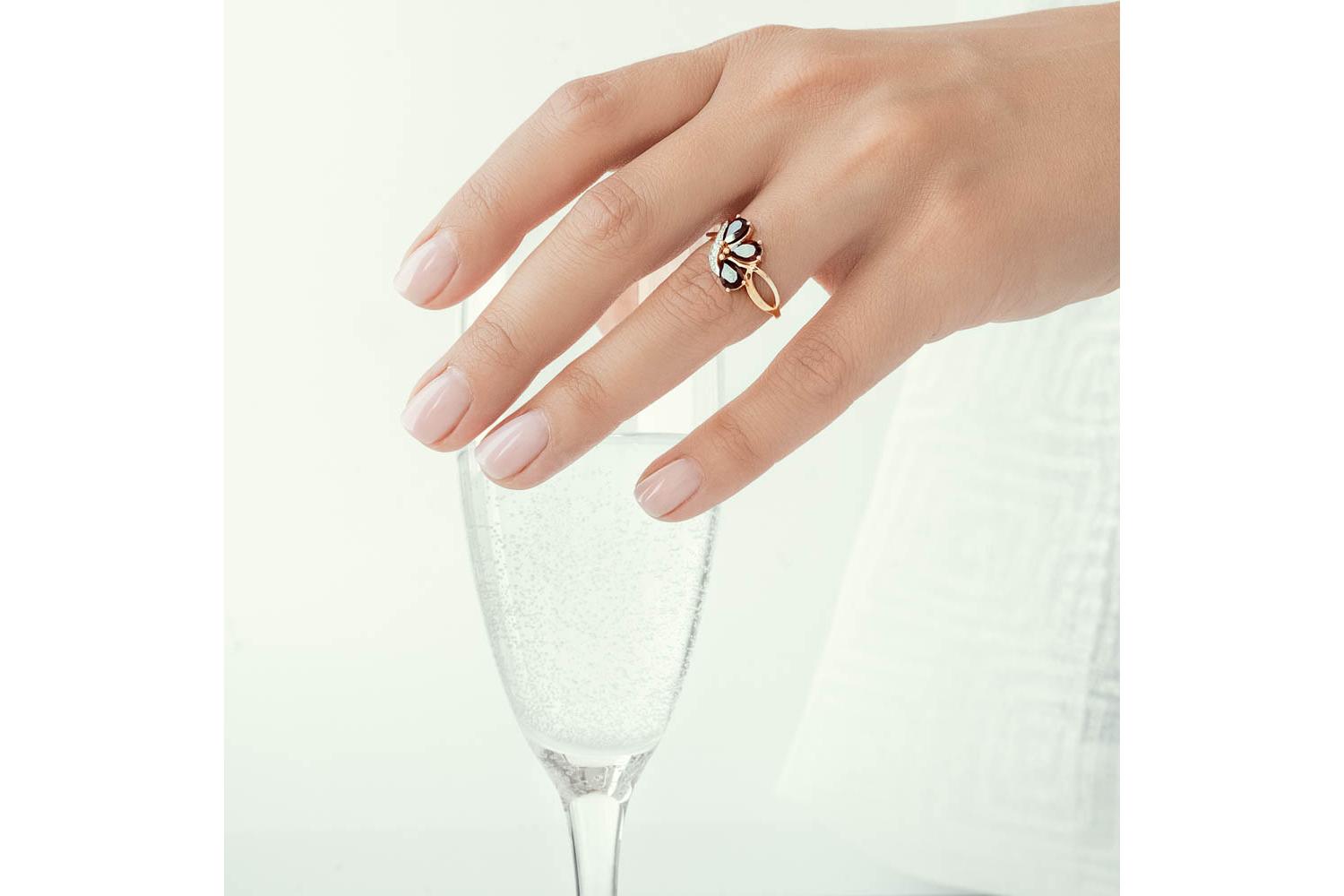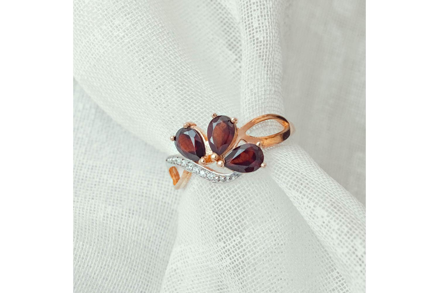 Мастера компании NEWGOLD, приложив всё свое мастерство и искусство, создали для Вас на нашем собственном производстве Кольцо из красного золота с 3 гранатами и 6 фианитами.