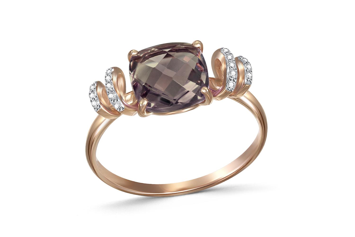 Мастера компании NEWGOLD, приложив всё свое мастерство и искусство, создали для Вас на нашем собственном производстве Кольцо из красного золота с раухтопазом и 16 фианитами.