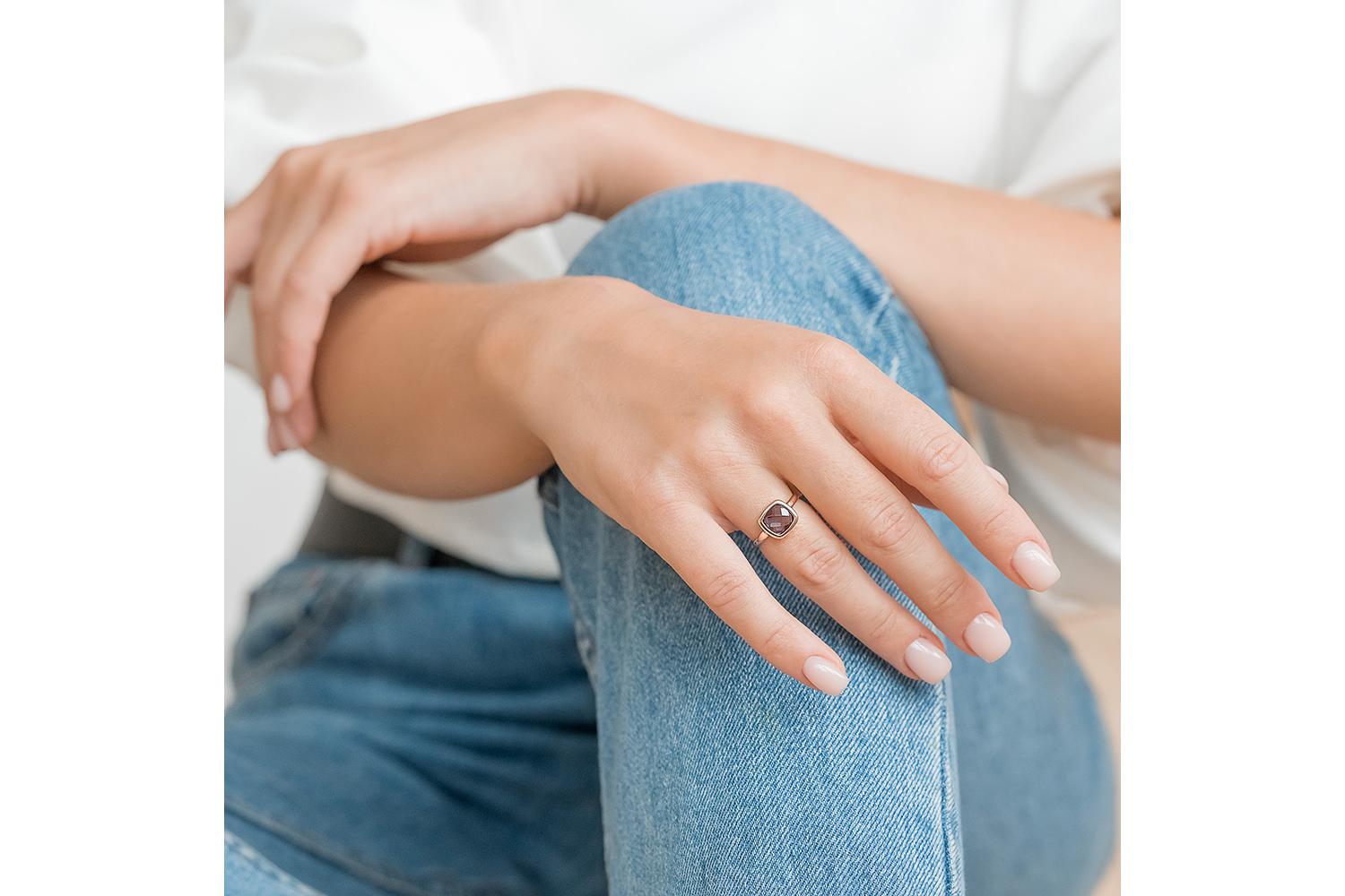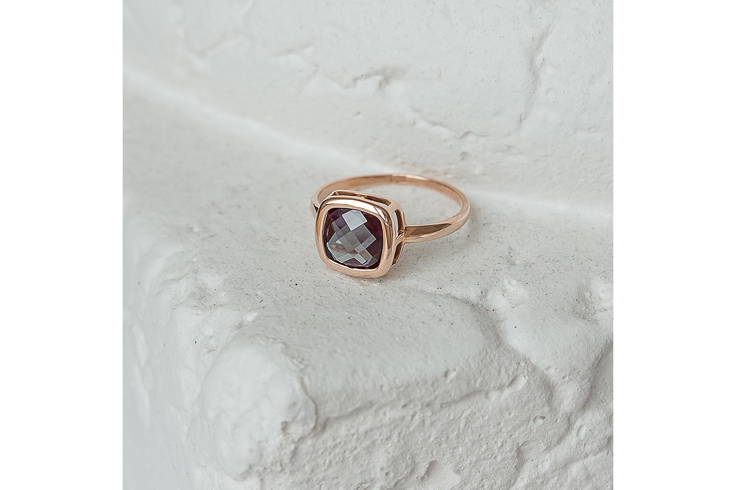 Изящное кольцо из розового золота - истинное воплощение элегантности и утонченности. Центральный камень - александрит - переливается глубокими оттенками синего и зеленого, создавая впечатляющую игру света благодаря огранке "антик" с многогранной поверхностью. Массивный квадратный камень обрамлен мягким золотым ободком, который плавно перетекает в тонкую изящную шинку. Плавные линии и классический дизайн подчеркивают природную красоту драгоценного минерала.