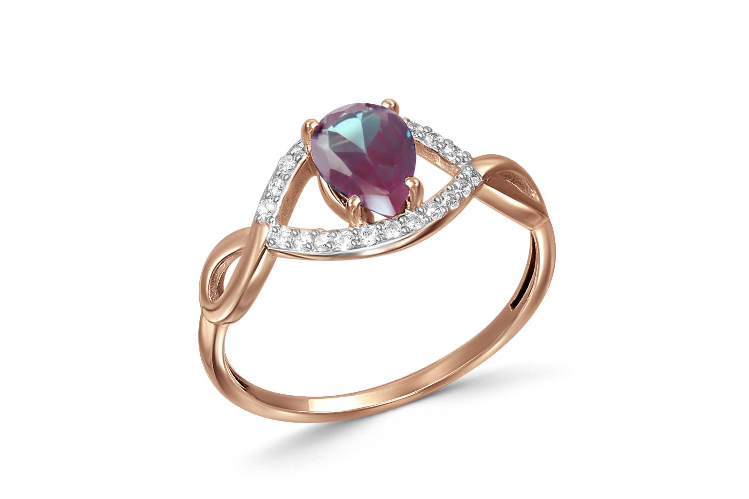 Мастера компании NEWGOLD, приложив всё свое мастерство и искусство, создали для Вас на нашем собственном производстве Кольцо из красного золота с александритом и 22 фианитами.