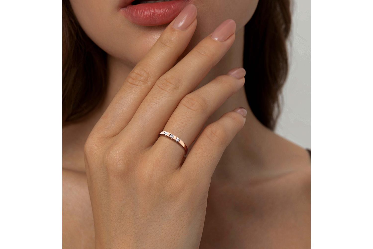 Мастера компании NEWGOLD, приложив всё свое мастерство и искусство, создали для Вас на нашем собственном производстве Кольцо из красного золота с 3 бриллиантами.