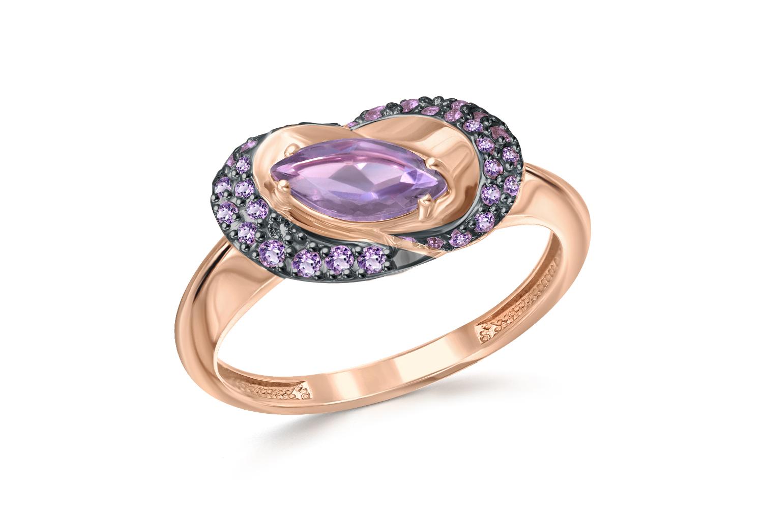 Мастера компании NEWGOLD, приложив всё свое мастерство и искусство, создали для Вас на нашем собственном производстве Кольцо из красного золота с аметистом и 34 фианитами.
