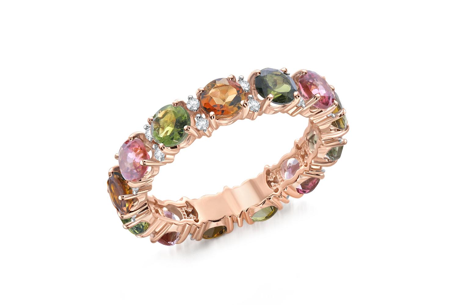 Закажите Кольцо Дорожка из красного золота с 13 турмалинами и 26 фианитами с получением в Москве через курьерскую службу доставки напрямую с нашего производственного склада завода NEWGOLD!