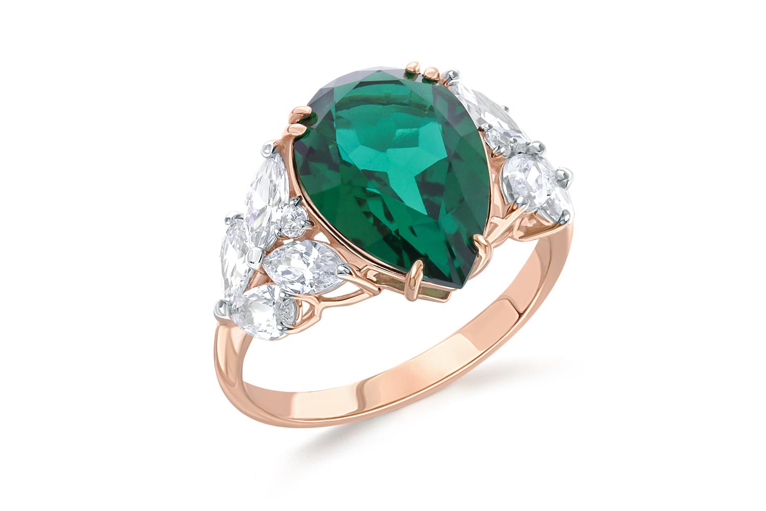 Закажите Кольцо из красного золота с изумрудом и 10 фианитами с получением в Москве через курьерскую службу доставки напрямую с нашего производственного склада завода NEWGOLD!