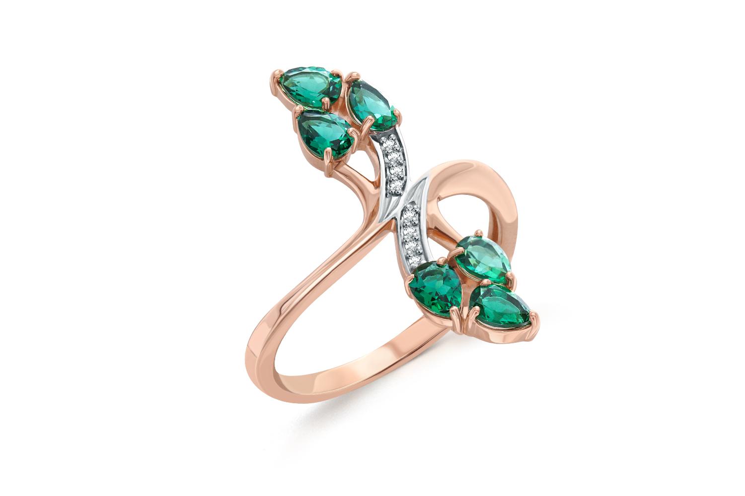 Мастера компании NEWGOLD, приложив всё свое мастерство и искусство, создали для Вас на нашем собственном производстве Кольцо из красного золота с 6 изумрудами и 8 фианитами.