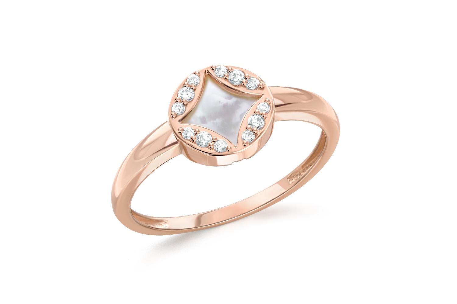 Мастера компании NEWGOLD, приложив всё свое мастерство и искусство, создали для Вас на нашем собственном производстве Кольцо из красного золота с перламутром и 12 фианитами.