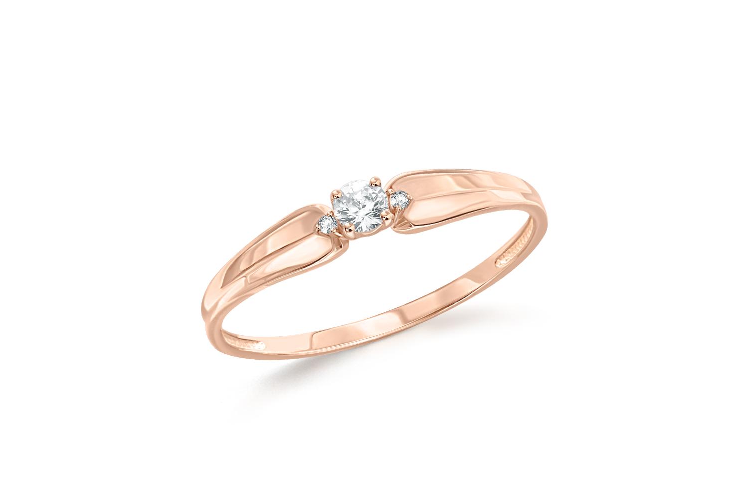 Металл: Золото, цвет: Красный , проба: 585. Вставки: Фианит б/цв, количество 1 шт. , огранка круг, размер 3 мм ; Фианит б/цв, количество 2 шт. , огранка круг, размер 1 мм.
