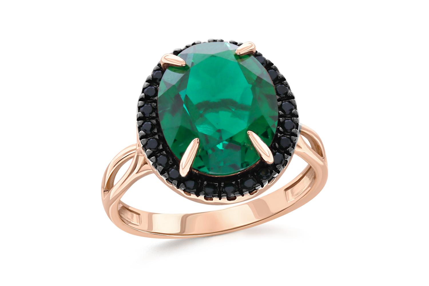 Мастера компании NEWGOLD, приложив всё свое мастерство и искусство, создали для Вас на нашем собственном производстве Кольцо из красного золота с изумрудом и 24 фианитами.