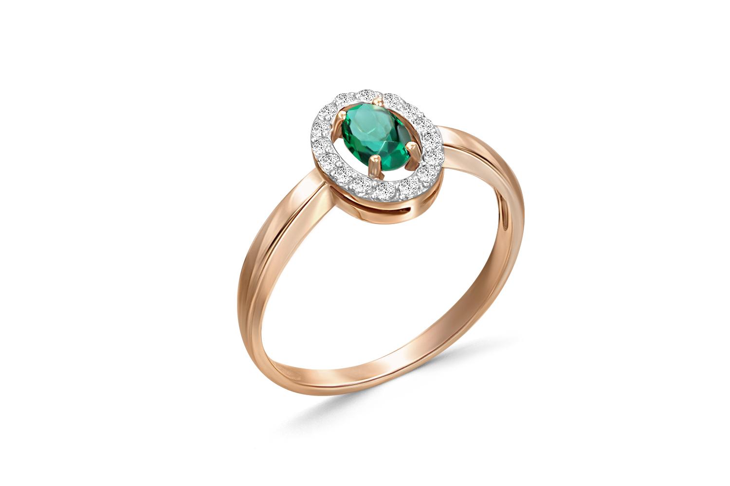 Закажите Кольцо из красного золота с изумрудом и 16 бриллиантами с получением в Москве через курьерскую службу доставки напрямую с нашего производственного склада завода NEWGOLD!