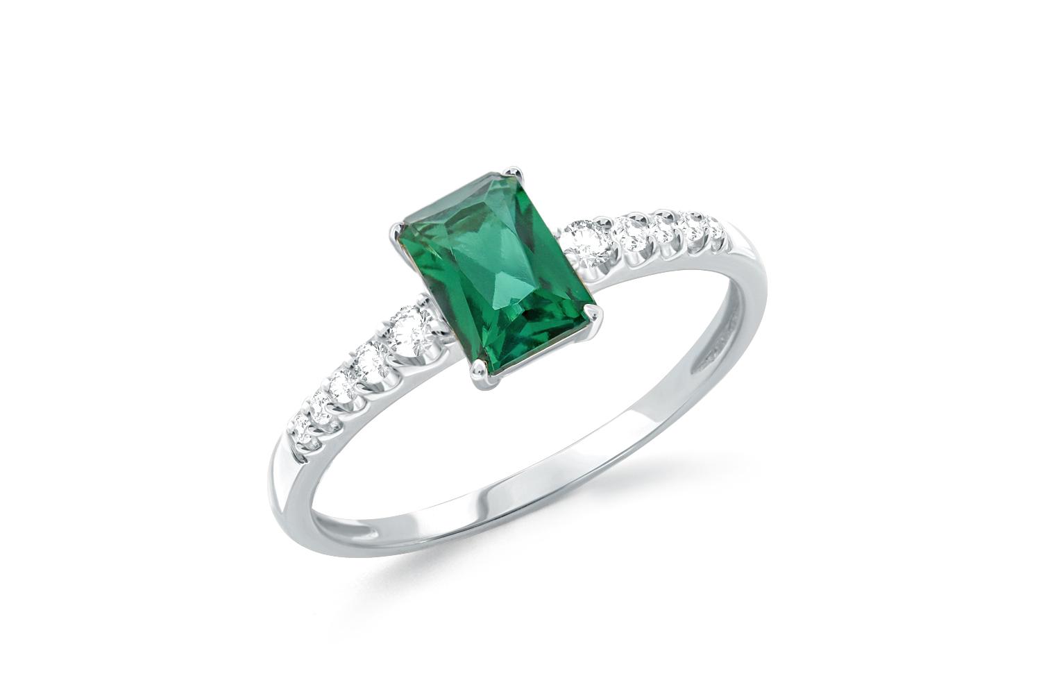 Закажите Кольцо из белого золота с изумрудом и 10 фианитами с получением в Москве через курьерскую службу доставки напрямую с нашего производственного склада завода NEWGOLD!