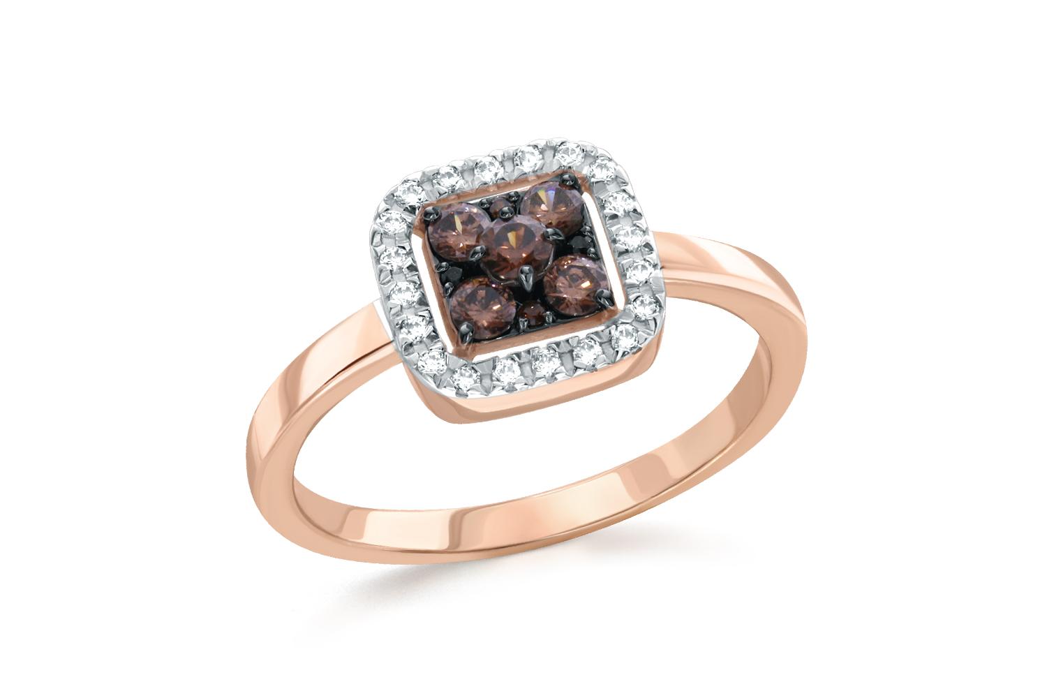 Фианит коричневый, количество 1 шт., огранка круг, размер 2,5 мм ; Фианит коричневый, количество 4 шт., огранка круг, размер 2,25 мм ; Фианит коричневый, количество 4 шт., огранка круг, размер 1 мм ; Фианит б/цв, количество 20 шт., огранка круг, размер