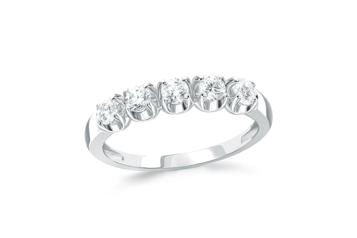 Мастера компании NEWGOLD, приложив всё свое мастерство и искусство, создали для Вас на нашем собственном производстве Кольцо Дорожка из белого золота с 5 муассанитами. Это изделие изысканного дизайна Вы можете приобрести в Москве с доставкой на дом. Также Вы имеете уникальную возможность заказать для себя изготовление нового эксклюзивного варианта украшения. Гарантируем высокое качество по доступной цене на весь представленный ассортимент. Хороших покупок!