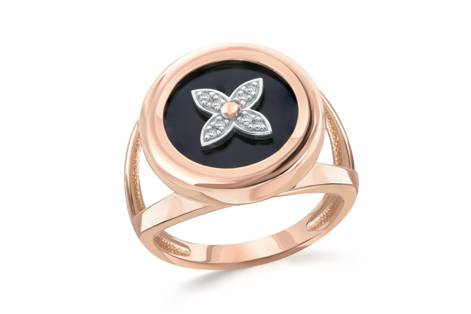 Закажите Кольцо Цветок из красного золота с ониксом и 8 фианитами с получением в Москве через курьерскую службу доставки напрямую с нашего производственного склада завода NEWGOLD!