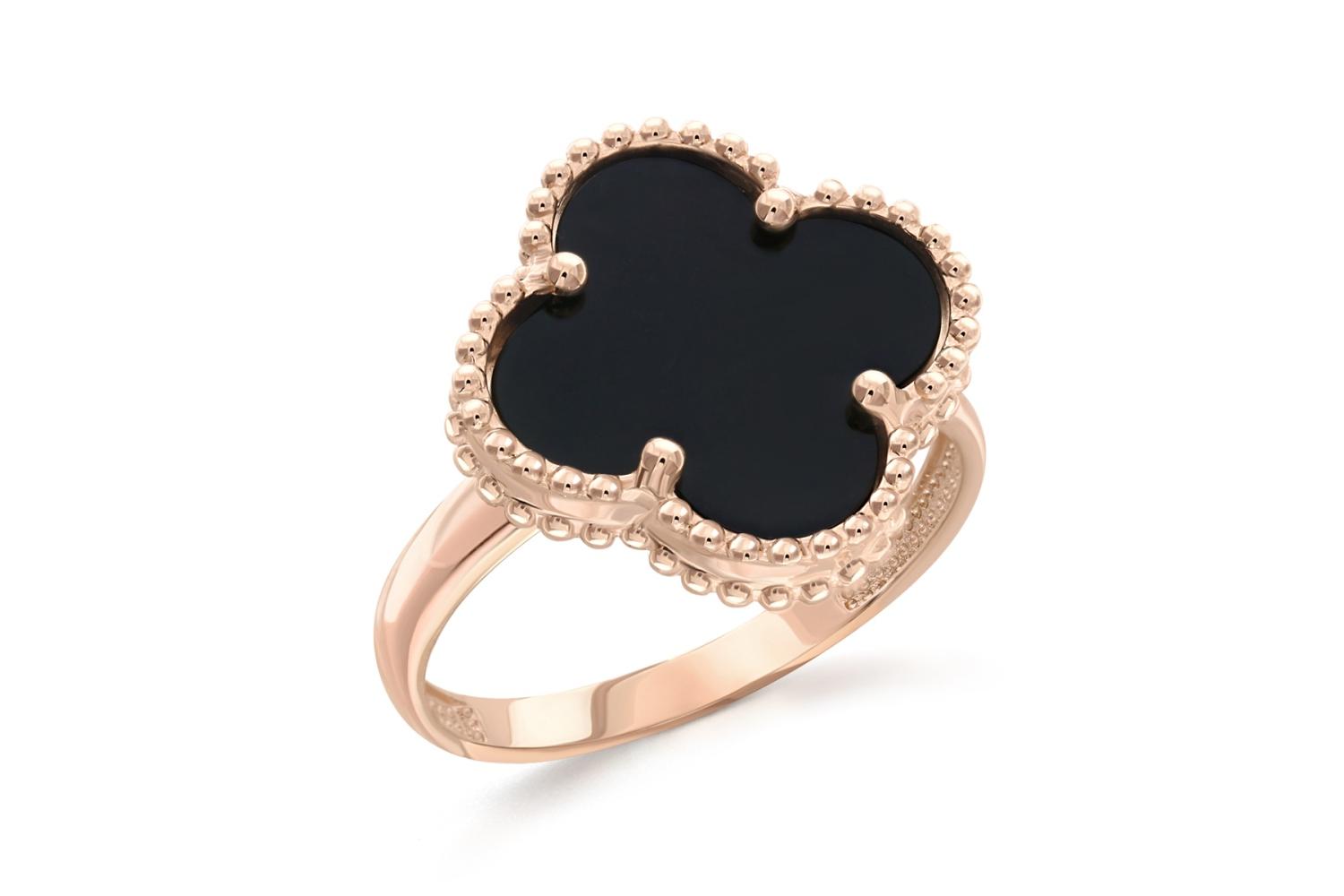 Закажите Кольцо Клевер из красного золота с ониксом с получением в Москве через курьерскую службу доставки напрямую с нашего производственного склада завода NEWGOLD!