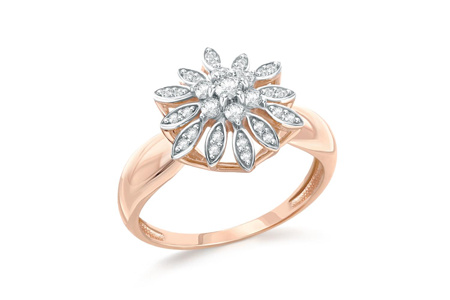 Мастера компании NEWGOLD, приложив всё свое мастерство и искусство, создали для Вас на нашем собственном производстве Кольцо Цветок из красного золота с 31 бриллиантами.