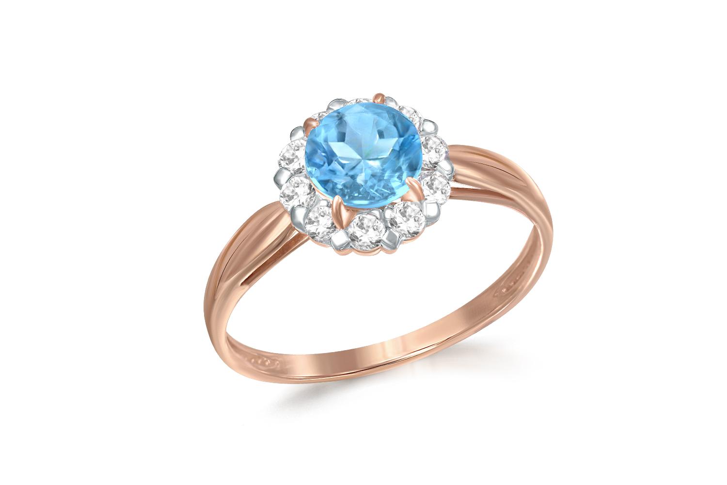 Мастера компании NEWGOLD, приложив всё свое мастерство и искусство, создали для Вас на нашем собственном производстве Кольцо из красного золота с топазом swiss и 10 фианитами.