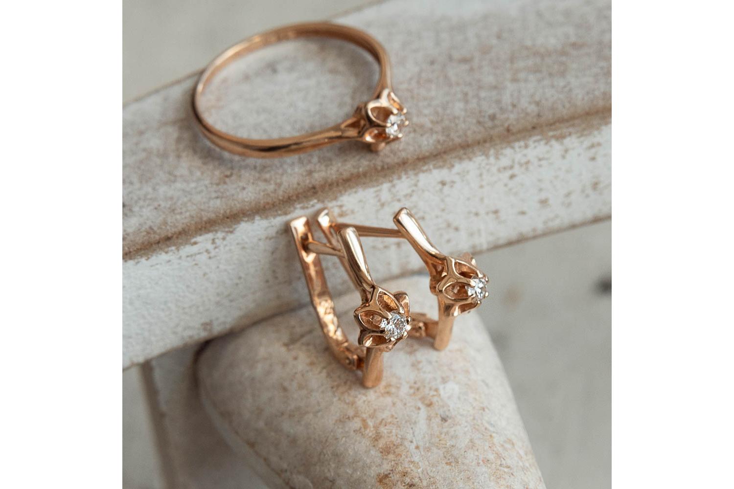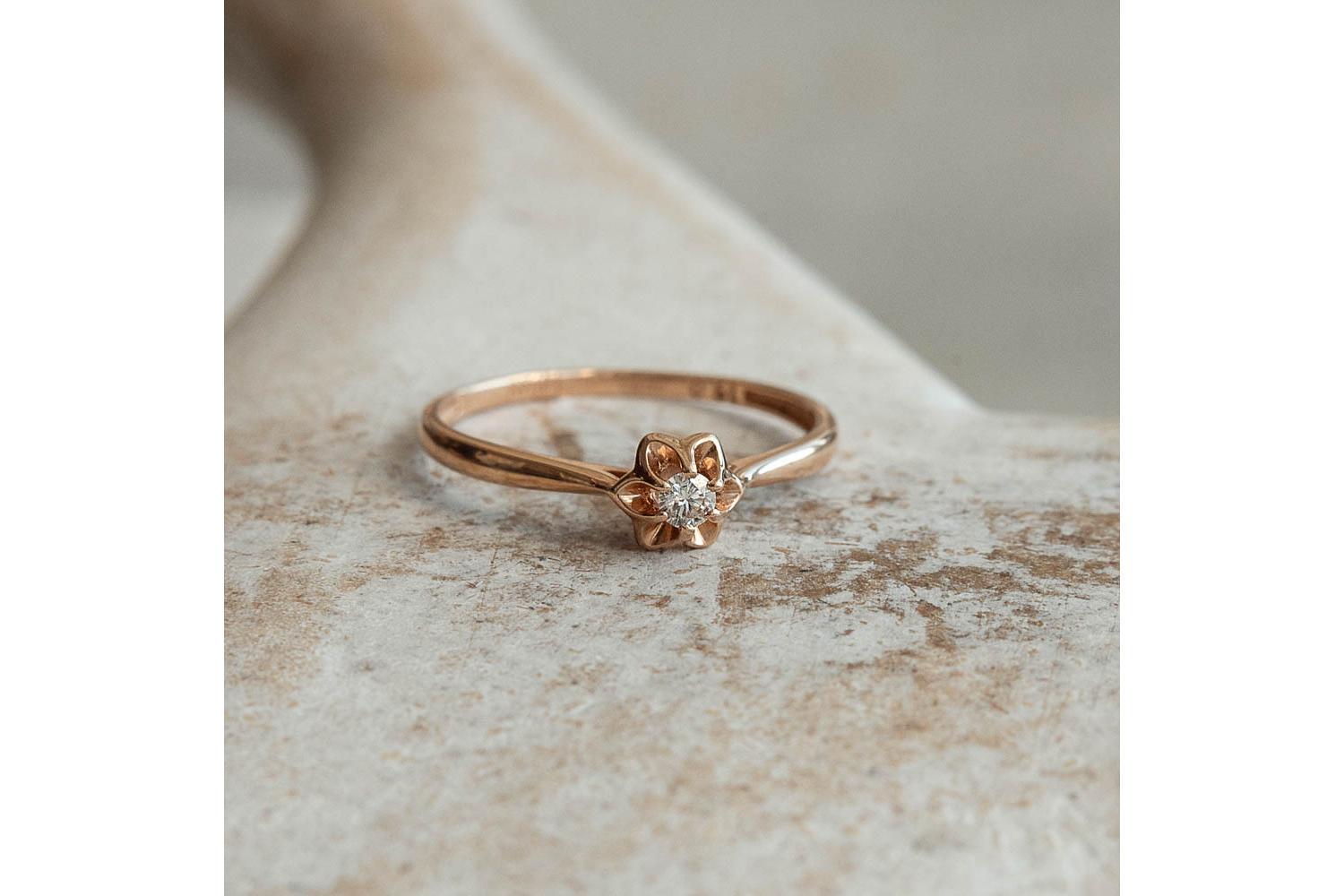 Мастера компании NEWGOLD, приложив всё свое мастерство и искусство, создали для Вас на нашем собственном производстве Кольцо Цветок из красного золота с бриллиантом.