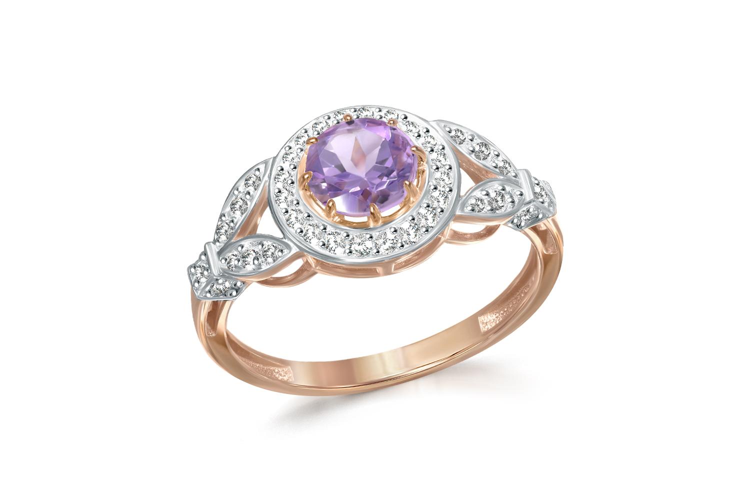 Мастера компании NEWGOLD, приложив всё свое мастерство и искусство, создали для Вас на нашем собственном производстве Кольцо из красного золота с аметистом и 38 фианитами.