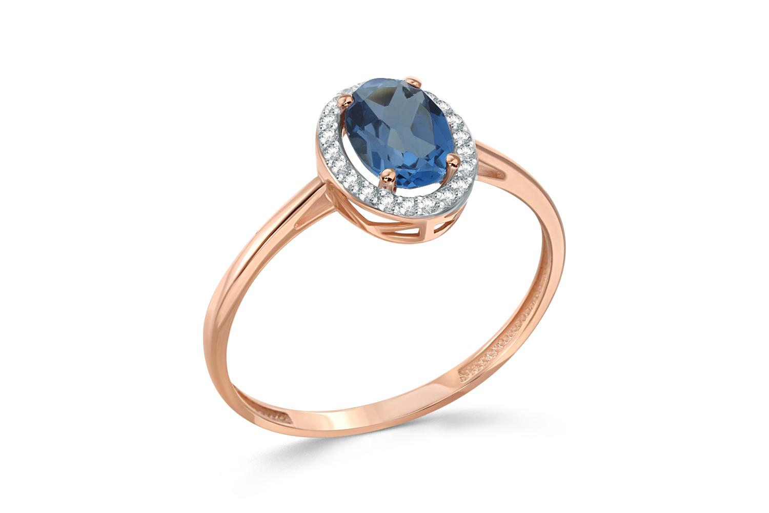 Закажите Кольцо из красного золота с топазом лондон и 22 фианитами с получением в Москве через курьерскую службу доставки напрямую с нашего производственного склада завода NEWGOLD!