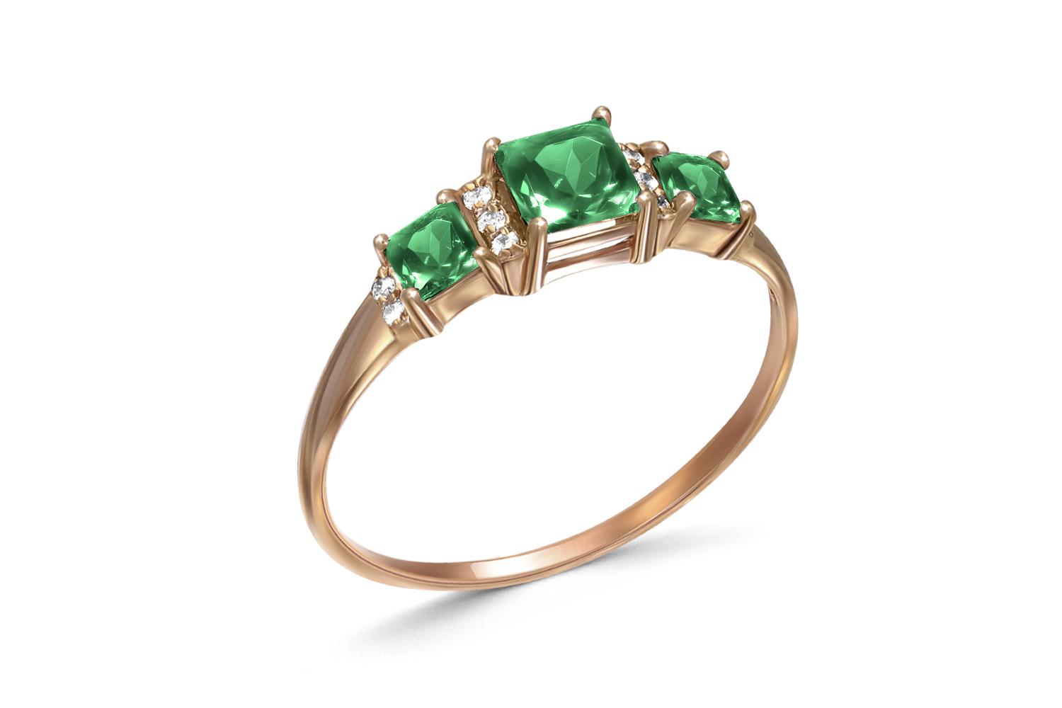 Закажите Кольцо из красного золота с 3 изумрудами и 10 бриллиантами с получением в Москве через курьерскую службу доставки напрямую с нашего производственного склада завода NEWGOLD!