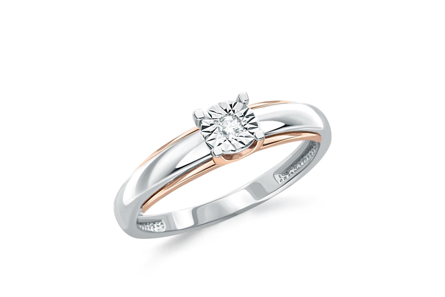 Золотое кольцо с бриллиантом — выбирайте для особых моментов. Это украшение сочетает в себе изящную красоту и неподвластную времени элегантность. Помолвочное кольцо, изготовленное из комбинированного ( красного и белого ) золота 585 пробы, станет символом любви и преданности. Блестящий бриллиант придает ему великолепный вид, который дополняет торжественность события.