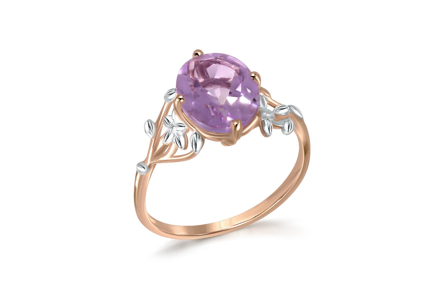 Мастера компании NEWGOLD, приложив всё свое мастерство и искусство, создали для Вас на нашем собственном производстве Кольцо Веточка из красного золота с аметистом.