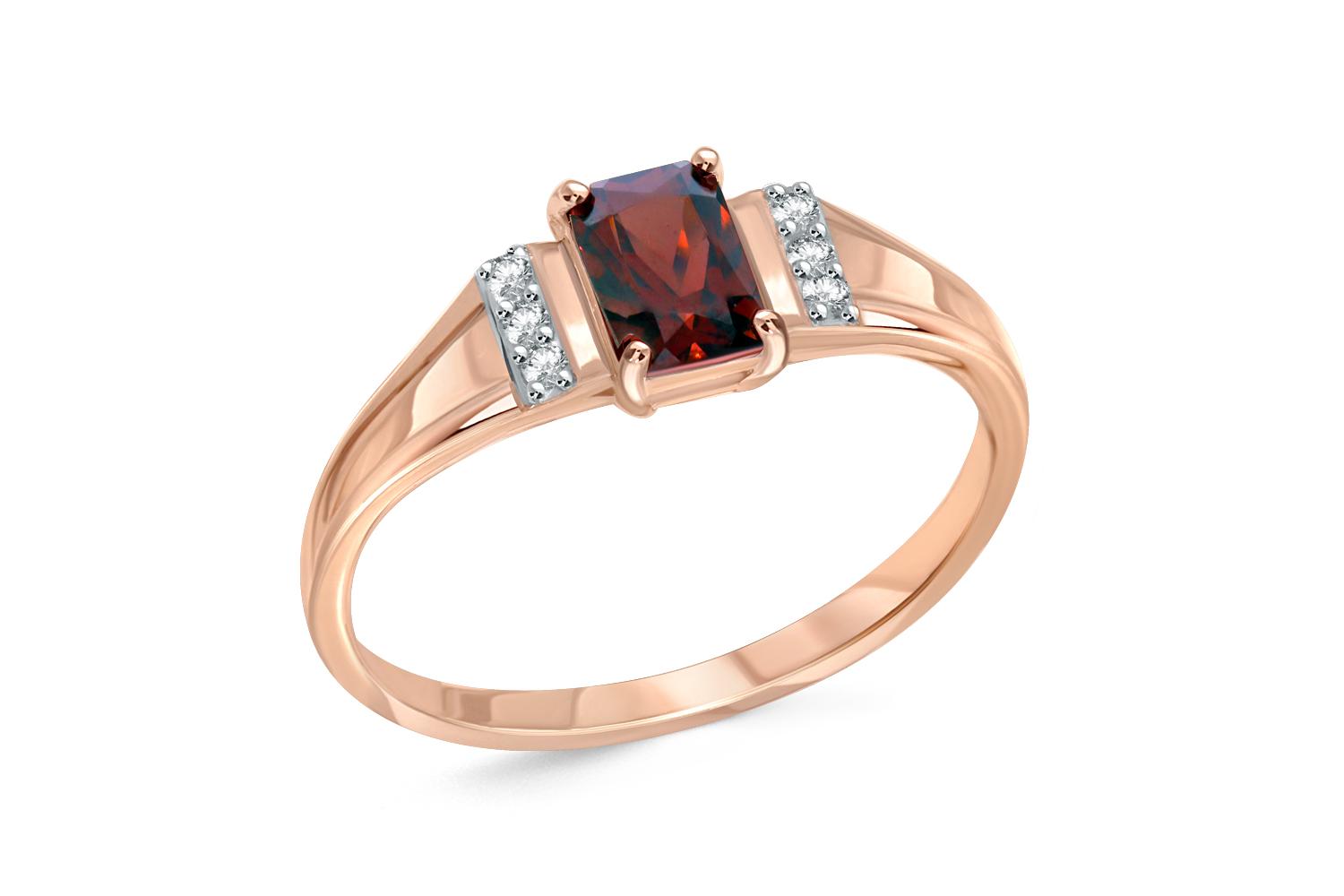 Мастера компании NEWGOLD, приложив всё свое мастерство и искусство, создали для Вас на нашем собственном производстве Кольцо из красного золота с гранатом и 6 фианитами.