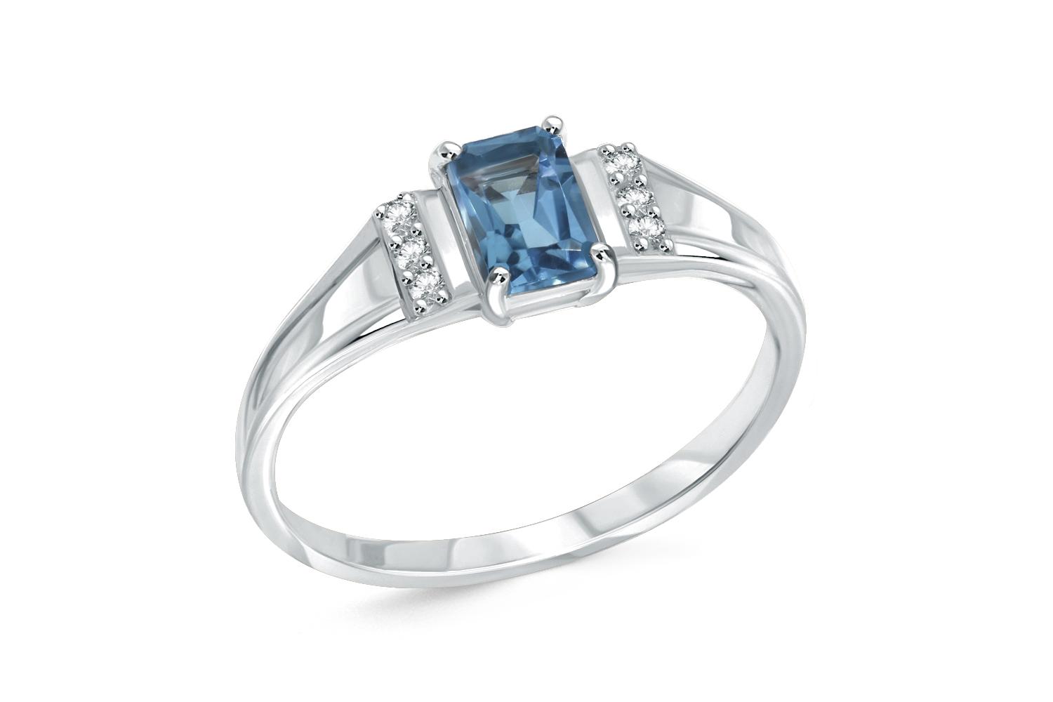 Мастера компании NEWGOLD, приложив всё свое мастерство и искусство, создали для Вас на нашем собственном производстве Кольцо из белого золота с топазом лондон и 6 фианитами.