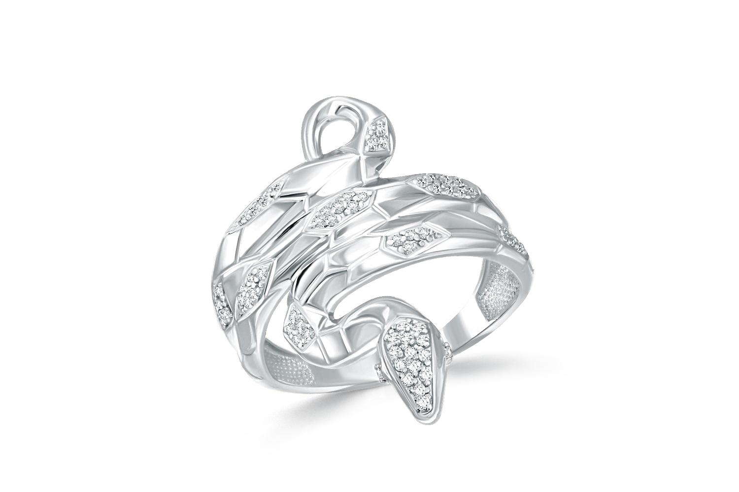 Мастера компании NEWGOLD, приложив всё свое мастерство и искусство, создали для Вас на нашем собственном производстве Кольцо Змея из белого золота с 64 фианитами.