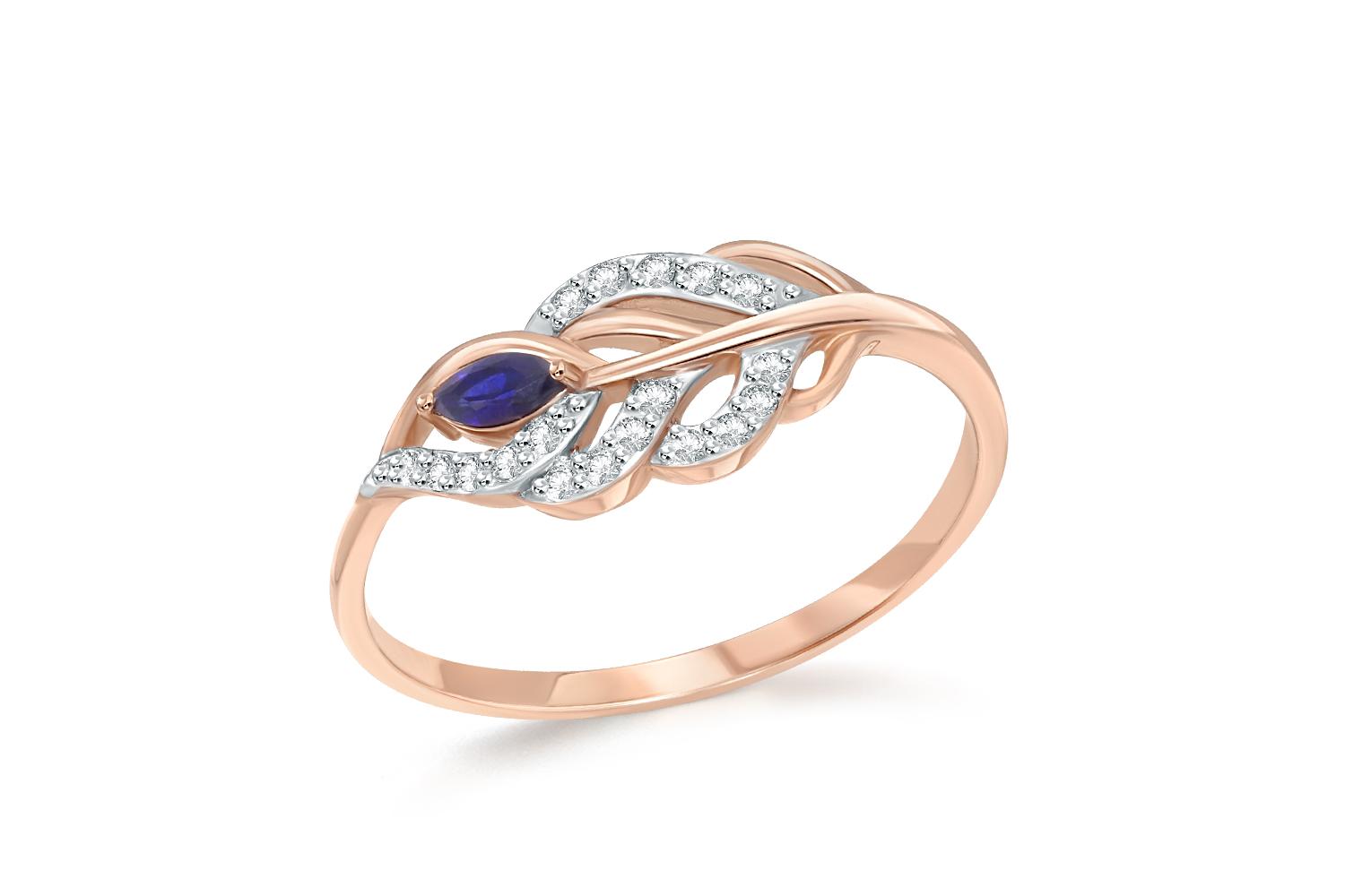 Мастера компании NEWGOLD, приложив всё свое мастерство и искусство, создали для Вас на нашем собственном производстве Кольцо Веточка из красного золота с корундом и 18 фианитами.