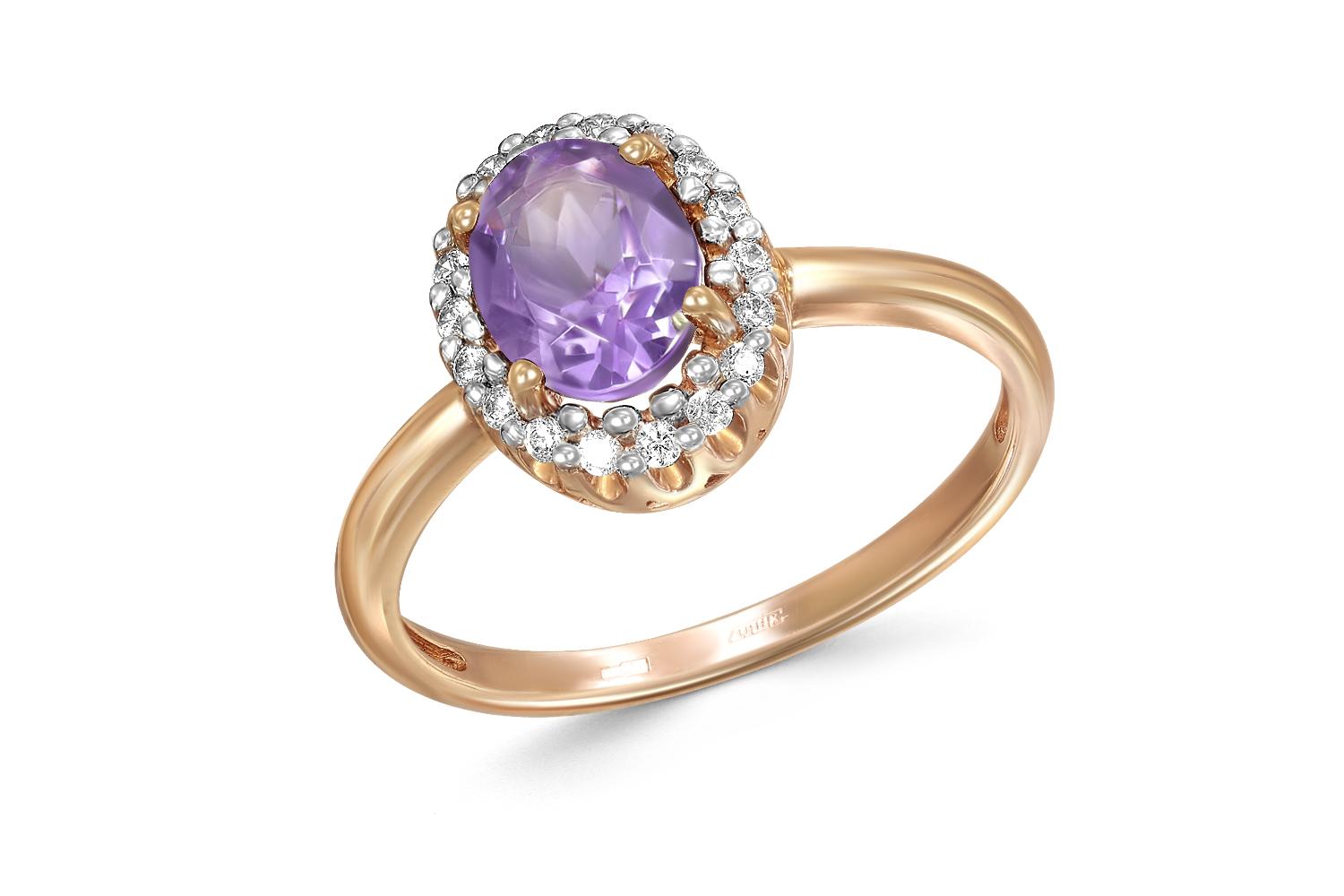 Мастера компании NEWGOLD, приложив всё свое мастерство и искусство, создали для Вас на нашем собственном производстве Кольцо из красного золота с аметистом и 18 фианитами.