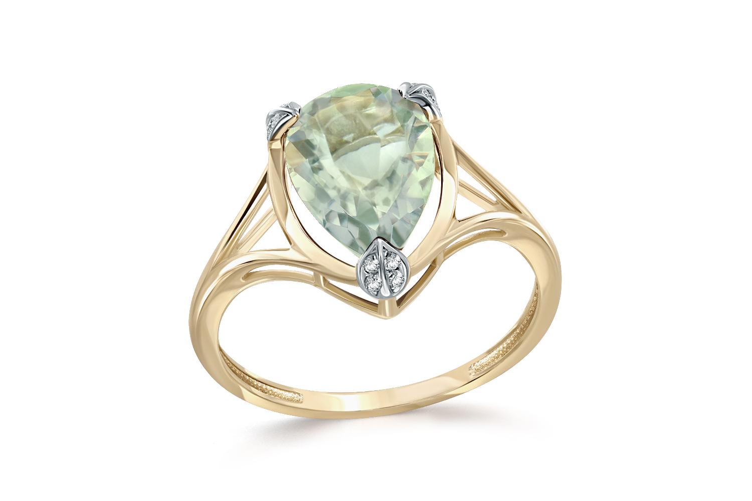 Аметист зеленый натуральный, количество 1 шт., огранка груша, размер 12ˣ8 ; Фианит б/цв, количество 12 шт., огранка круг, размер 0,9 мм