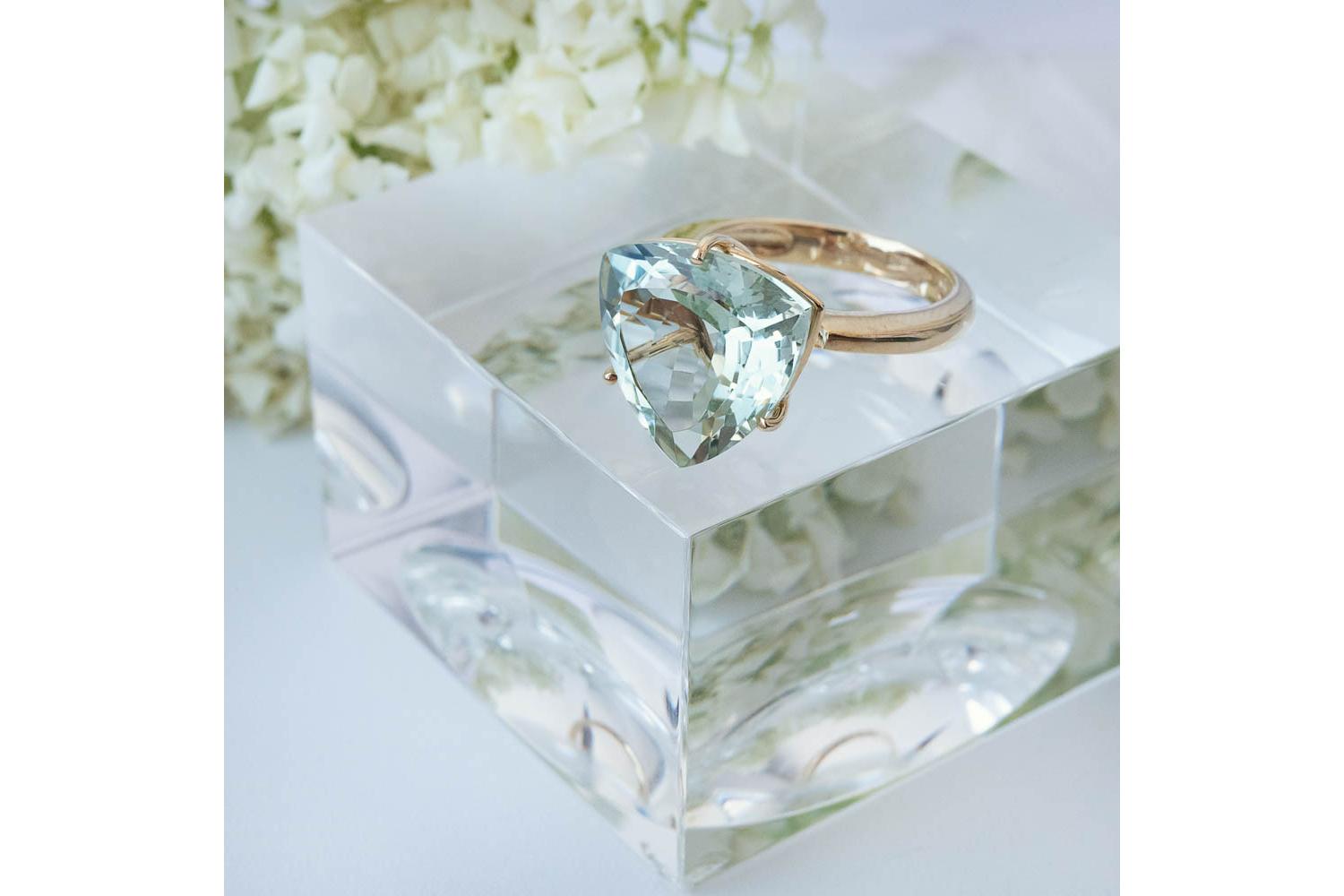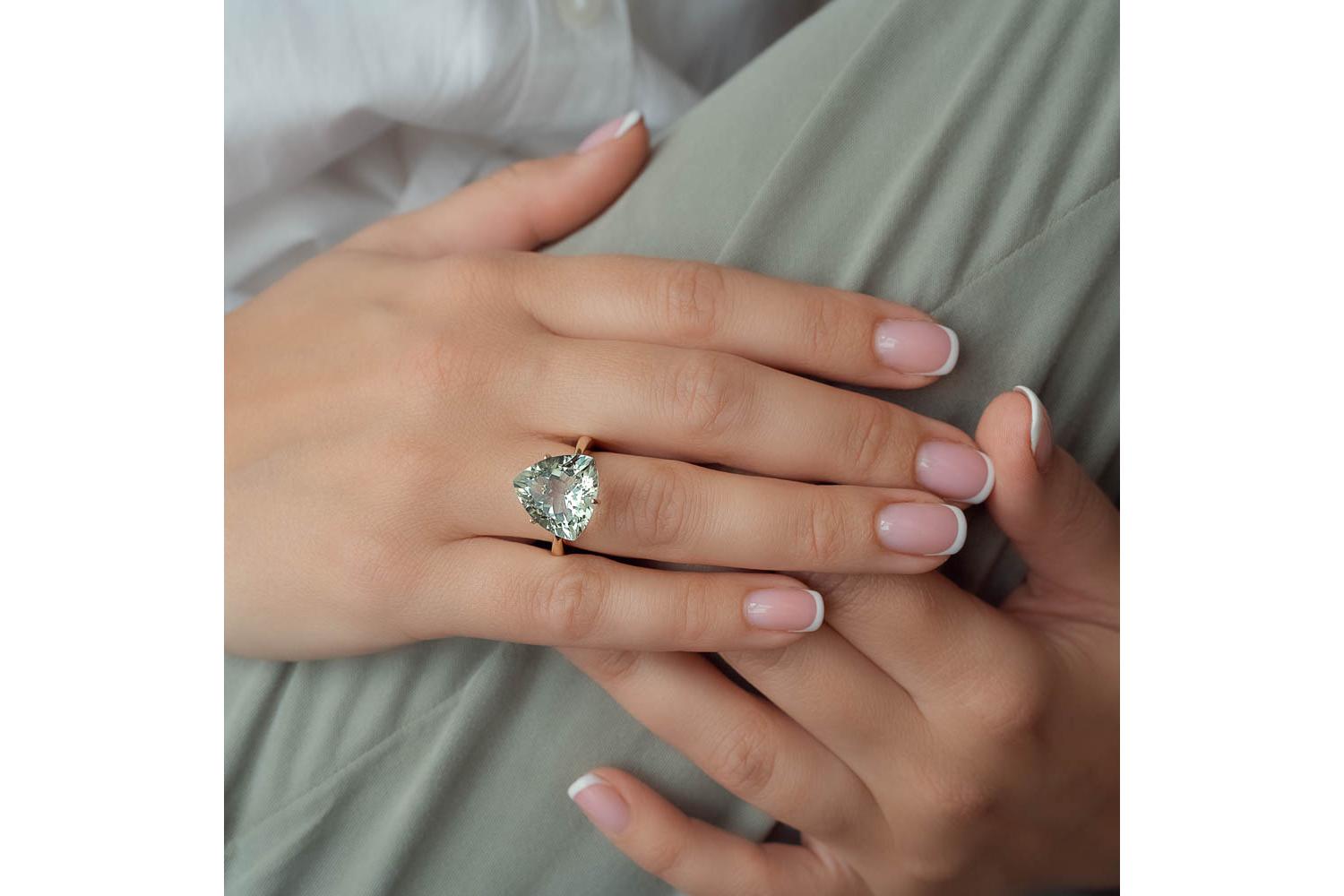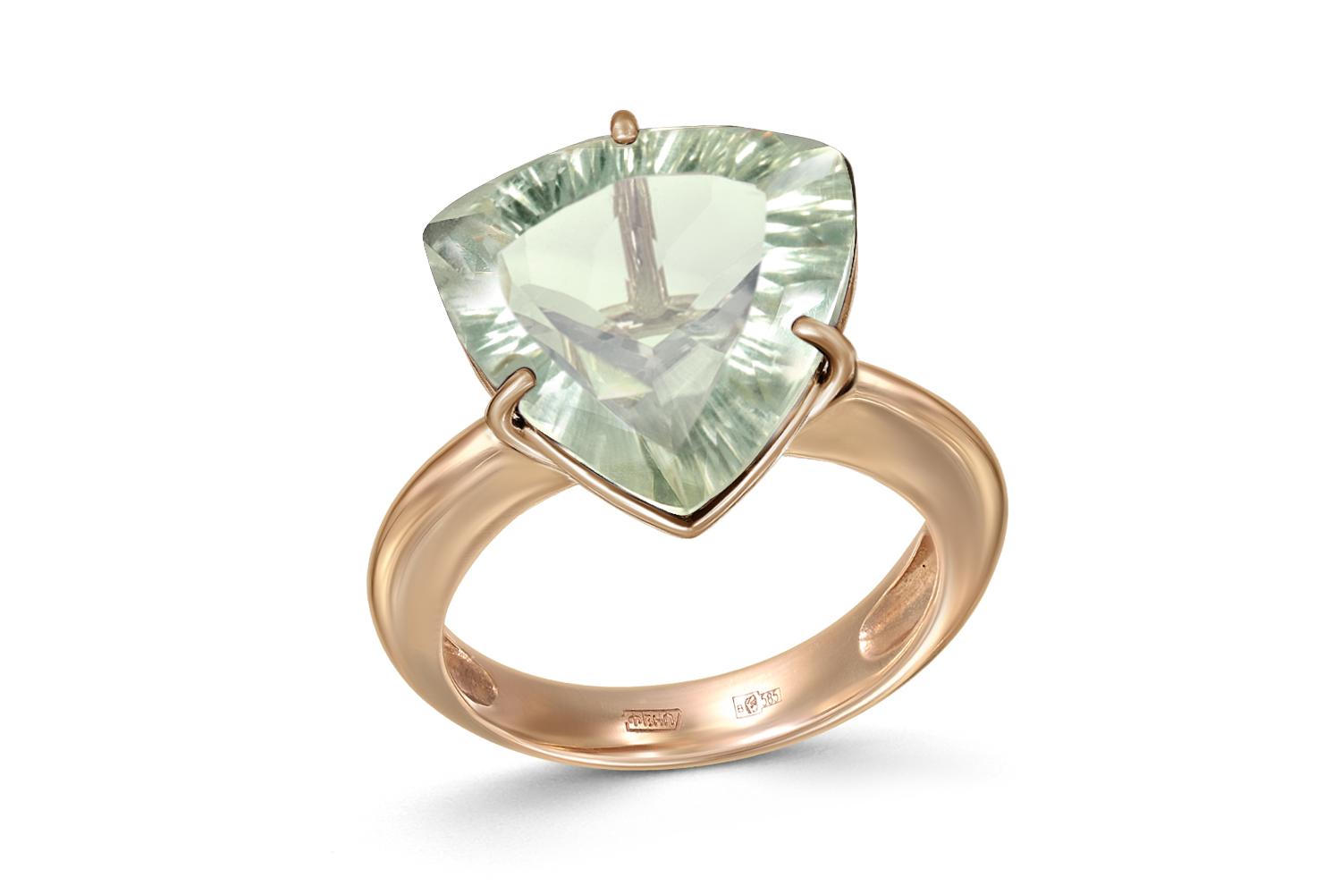 Аметист зеленый натуральный, количество 1 шт., огранка триллион, размер 15ˣ15