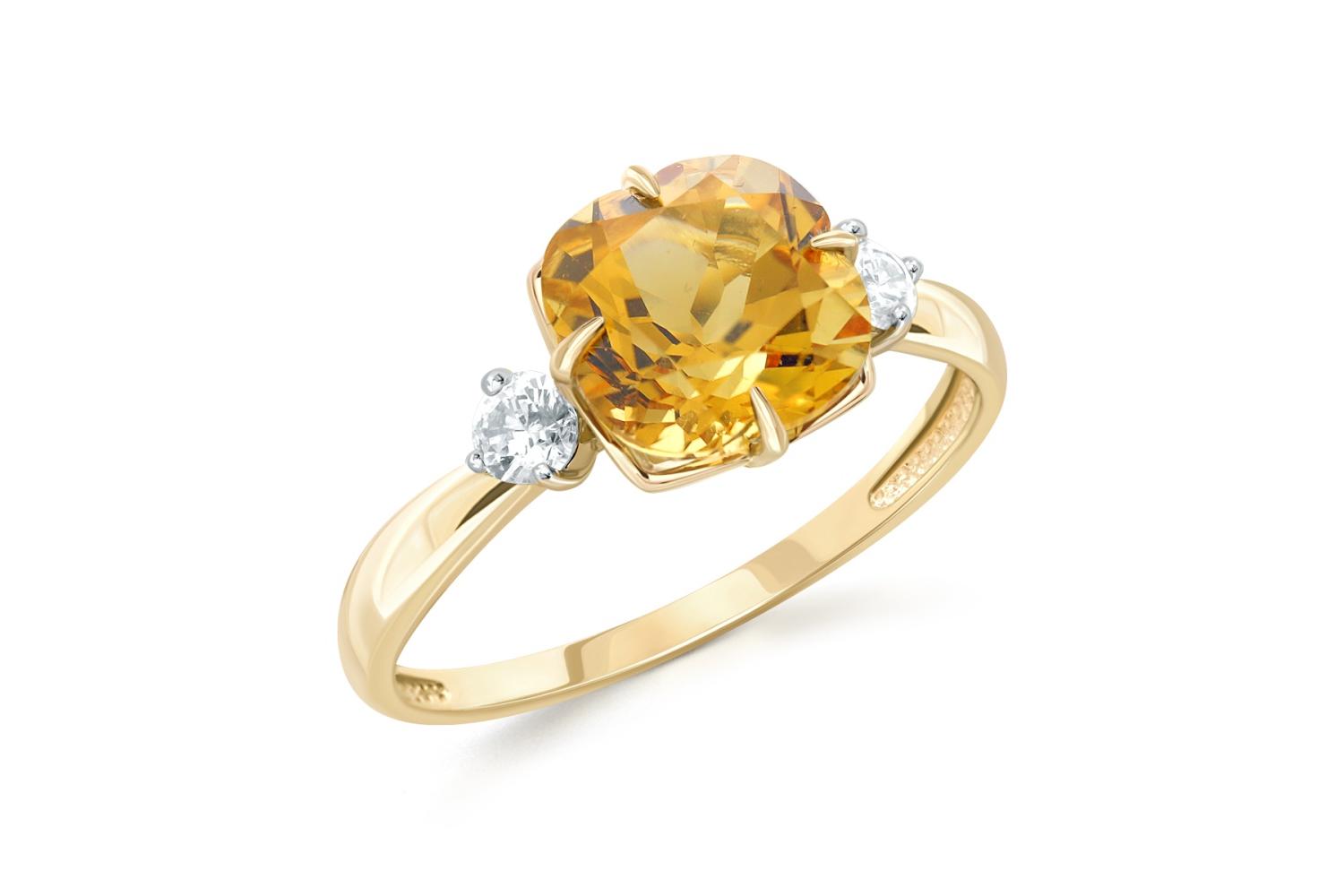 Мастера компании NEWGOLD, приложив всё свое мастерство и искусство, создали для Вас на нашем собственном производстве Кольцо из жёлтого золота с цитрином и 2 фианитами.