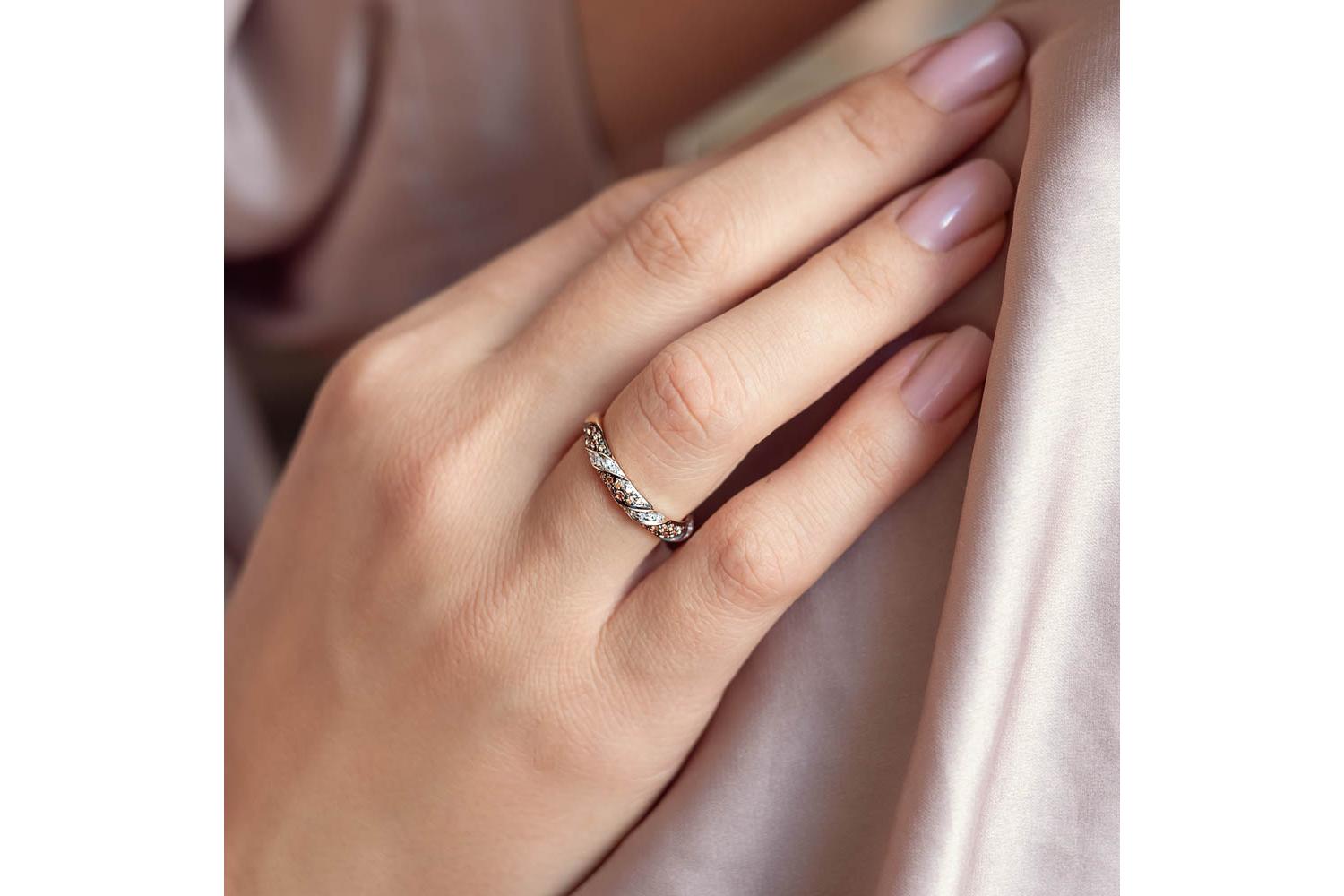 Мастера компании NEWGOLD, приложив всё свое мастерство и искусство, создали для Вас на нашем собственном производстве Кольцо из красного золота с 47 фианитами.