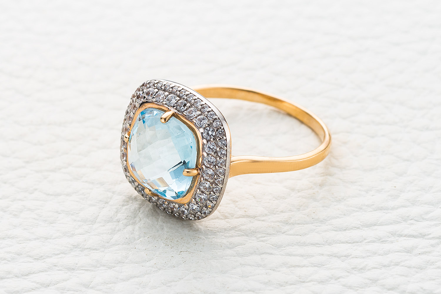 Топаз Sky натуральный, количество 1 шт., огранка антик-бриолет, размер 10ˣ10 ; Фианит б/цв, количество 26 шт., огранка круг, размер 1,5 мм ; Фианит б/цв, количество 42 шт., огранка круг, размер 1 мм