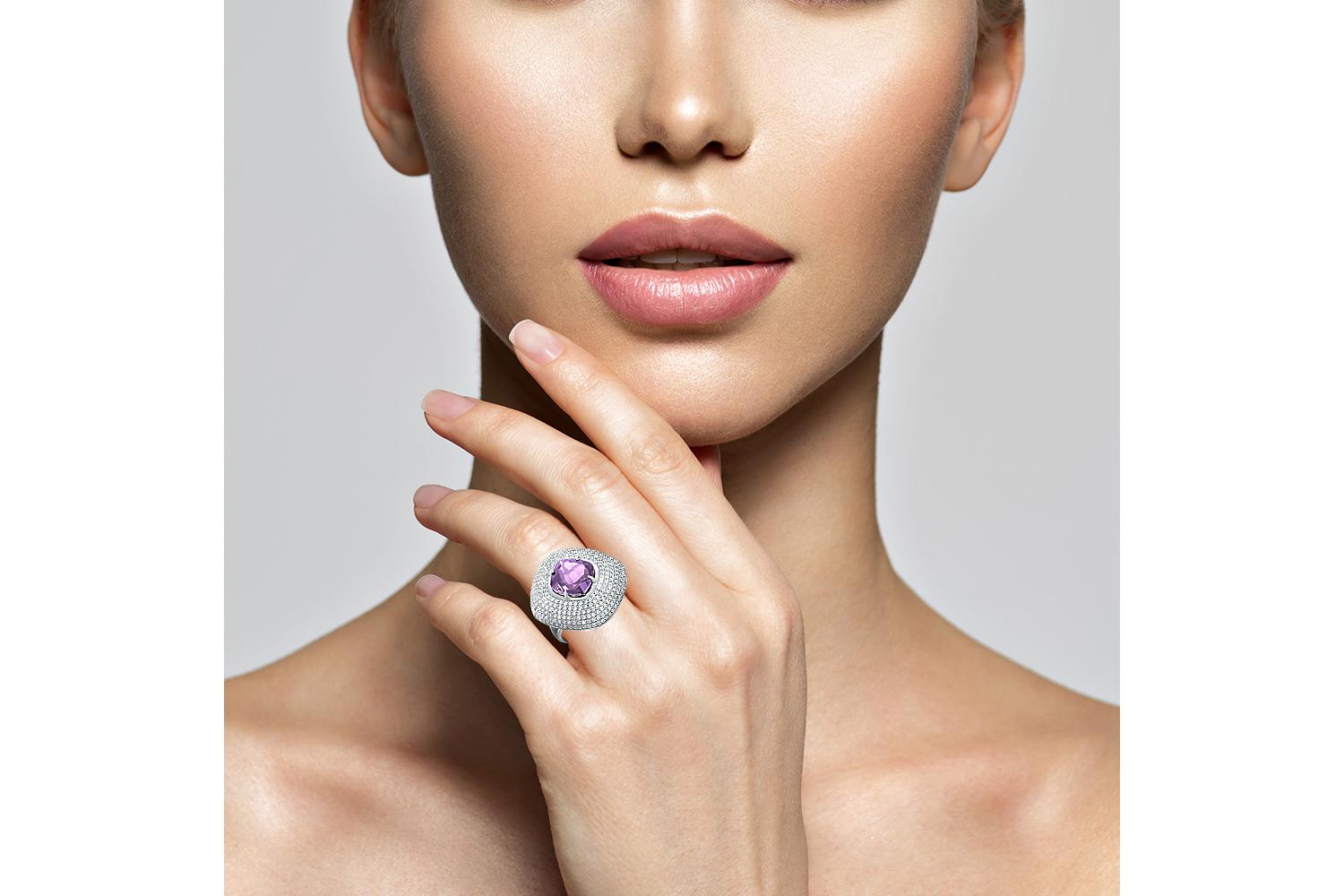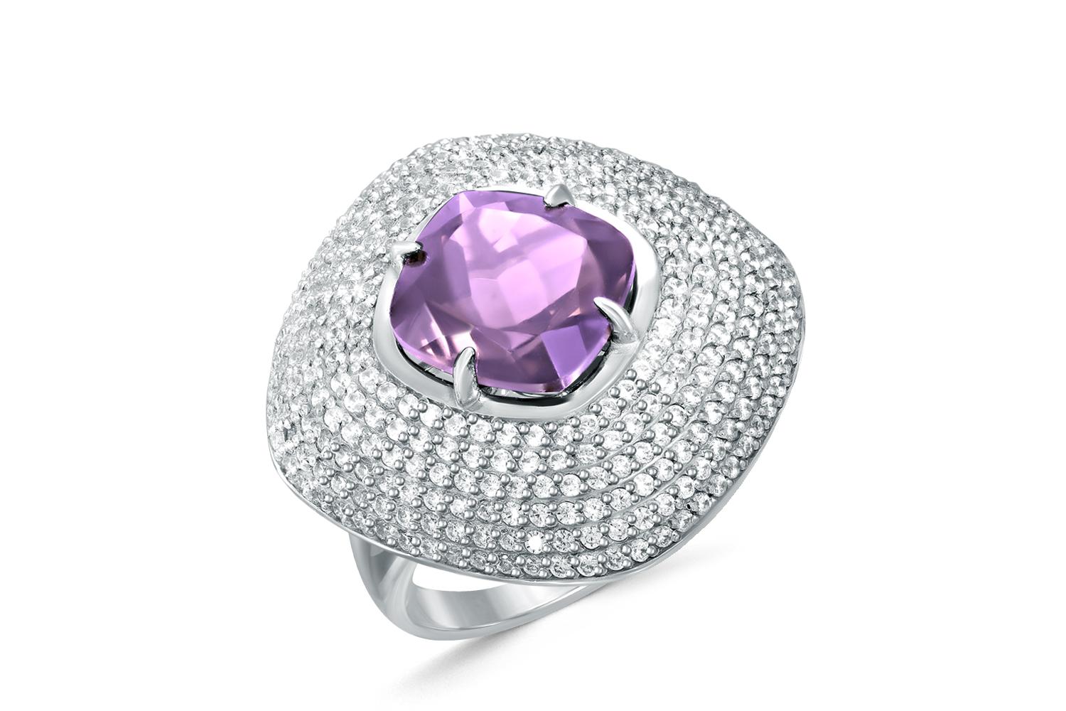 Мастера компании NEWGOLD, приложив всё свое мастерство и искусство, создали для Вас на нашем собственном производстве Кольцо из белого золота с аметистом и 292 бриллиантами.