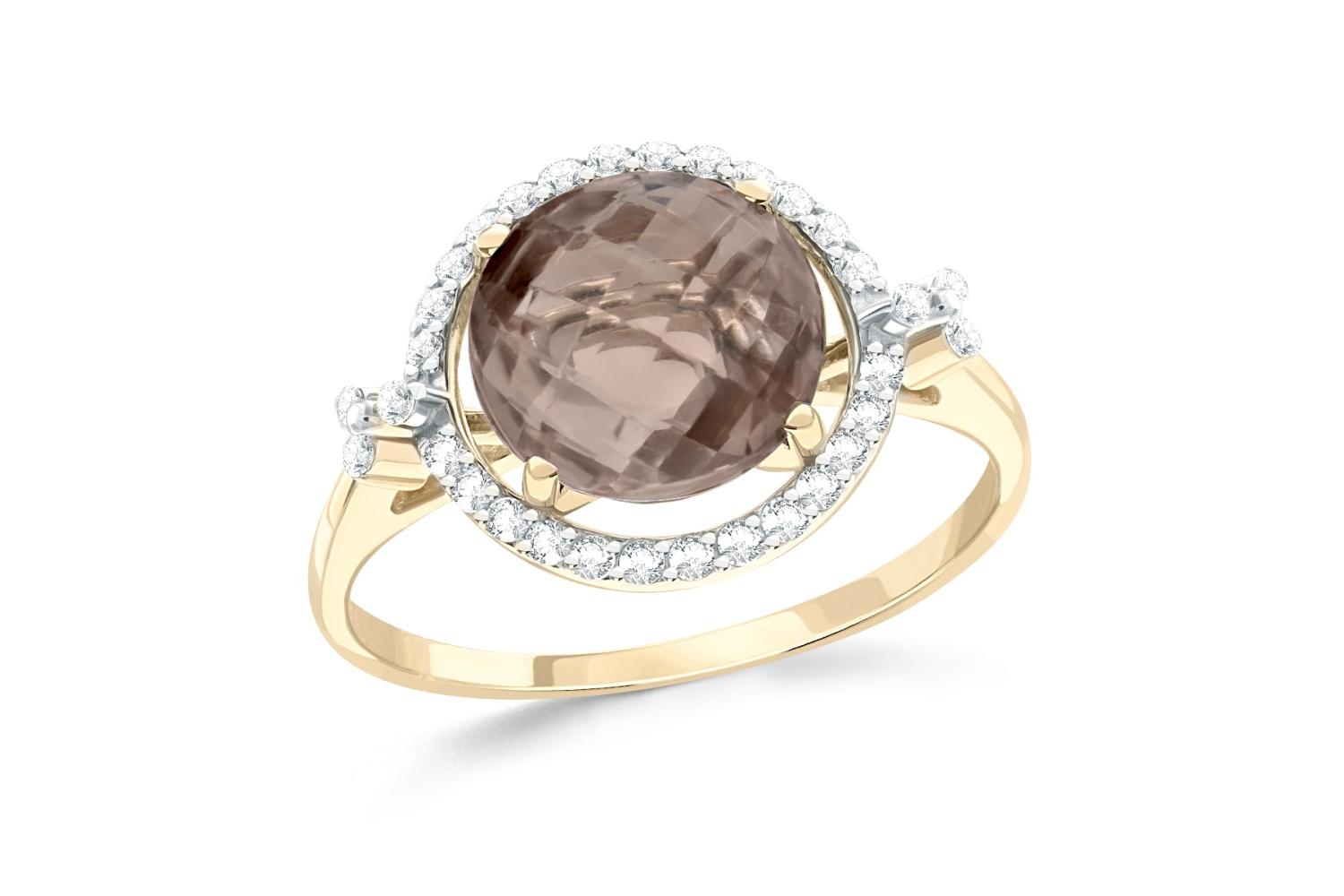 Мастера компании NEWGOLD, приложив всё свое мастерство и искусство, создали для Вас на нашем собственном производстве Кольцо из жёлтого золота с раухтопазом и 32 фианитами.