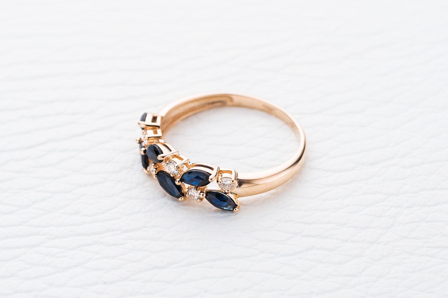 Мастера компании NEWGOLD, приложив всё свое мастерство и искусство, создали для Вас на нашем собственном производстве Кольцо из красного золота с 6 сапфирами и 6 бриллиантами.