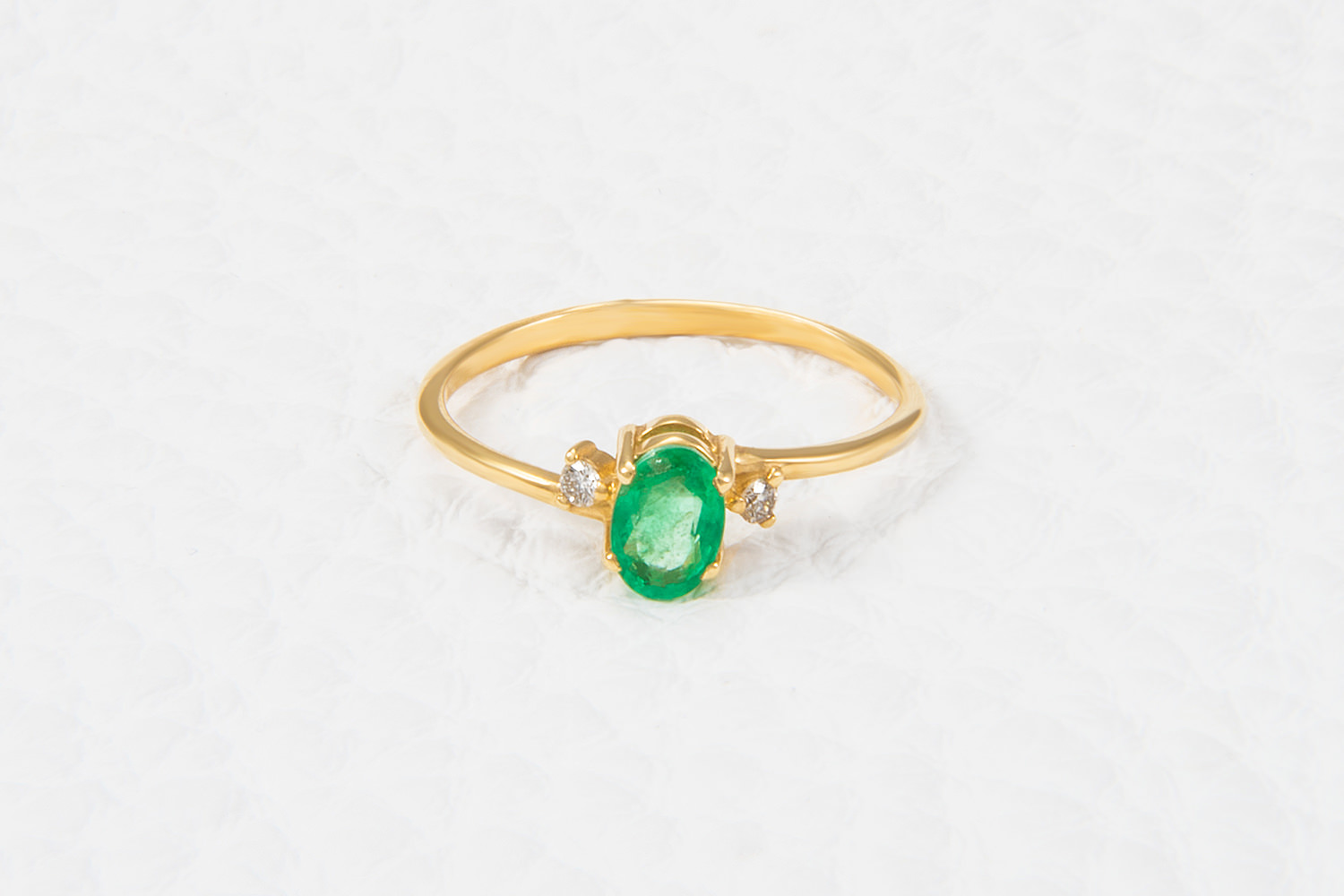 Мастера компании NEWGOLD, приложив всё свое мастерство и искусство, создали для Вас на нашем собственном производстве Кольцо из жёлтого золота с изумрудом и 2 бриллиантами.