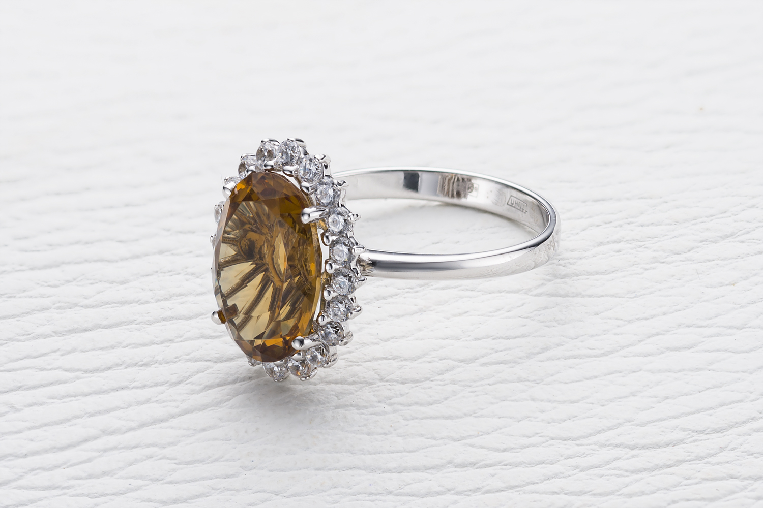 Мастера компании NEWGOLD, приложив всё свое мастерство и искусство, создали для Вас на нашем собственном производстве Кольцо из белого золота с султанитом и 20 фианитами.