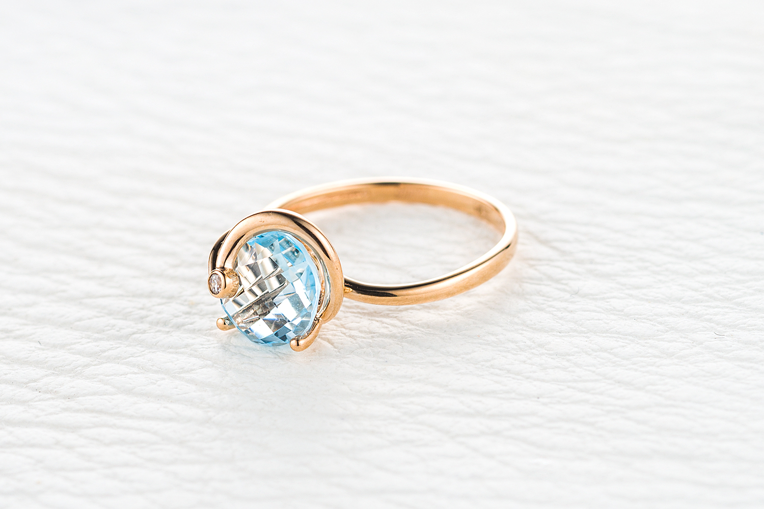 Топаз Sky натуральный, количество 1 шт., огранка круг-бриолет, размер 8 мм ; Фианит б/цв, количество 1 шт., огранка круг, размер 1,5 мм