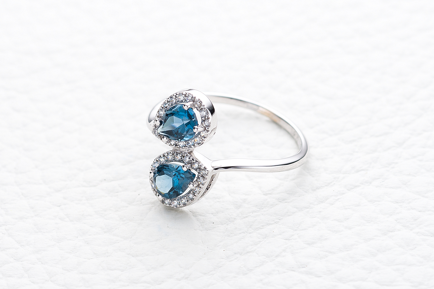Мастера компании NEWGOLD, приложив всё свое мастерство и искусство, создали для Вас на нашем собственном производстве Кольцо из белого золота с 2 топазами лондон и 32 фианитами.