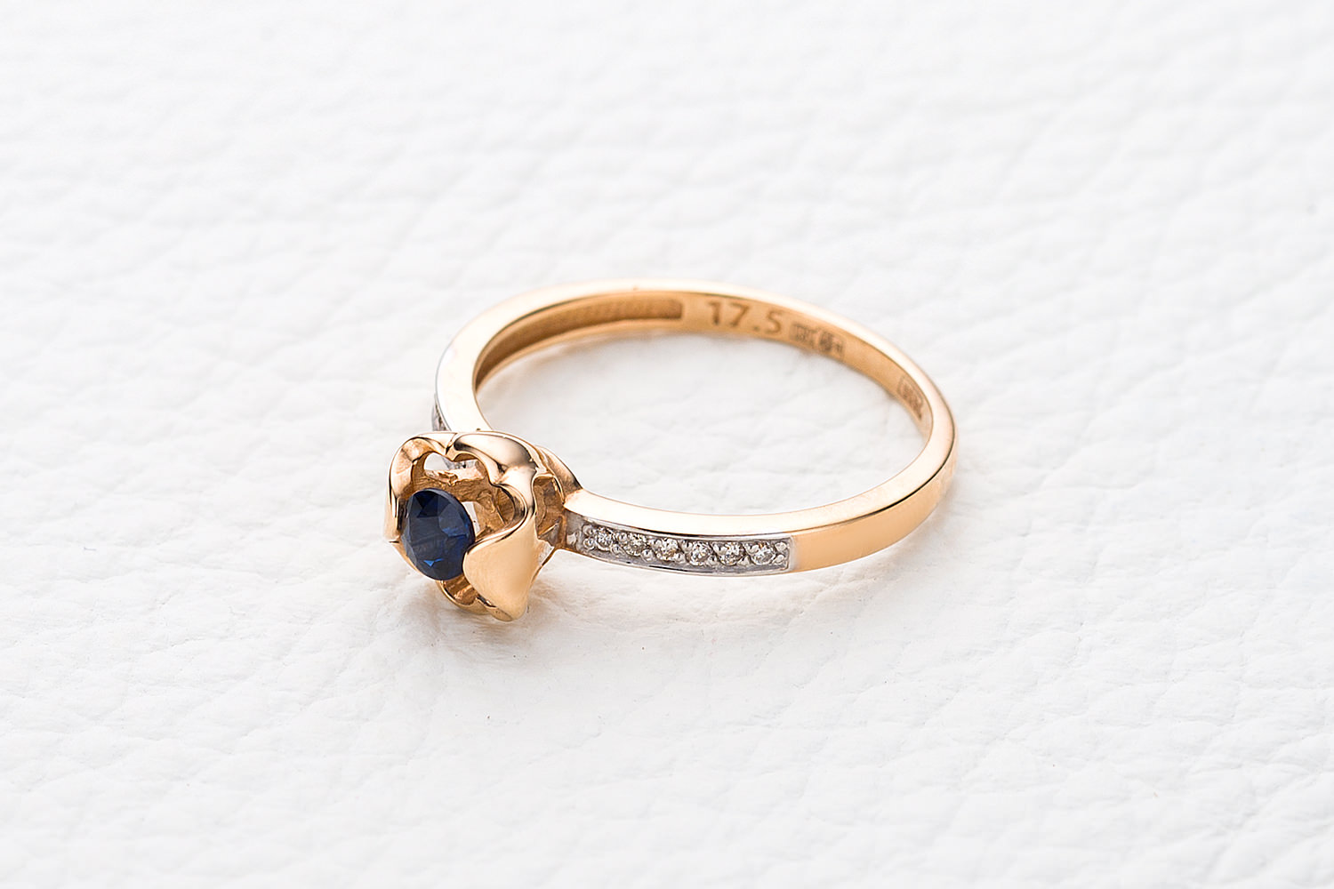 Мастера компании NEWGOLD, приложив всё свое мастерство и искусство, создали для Вас на нашем собственном производстве Кольцо Цветок из красного золота с сапфиром и 12 бриллиантами.