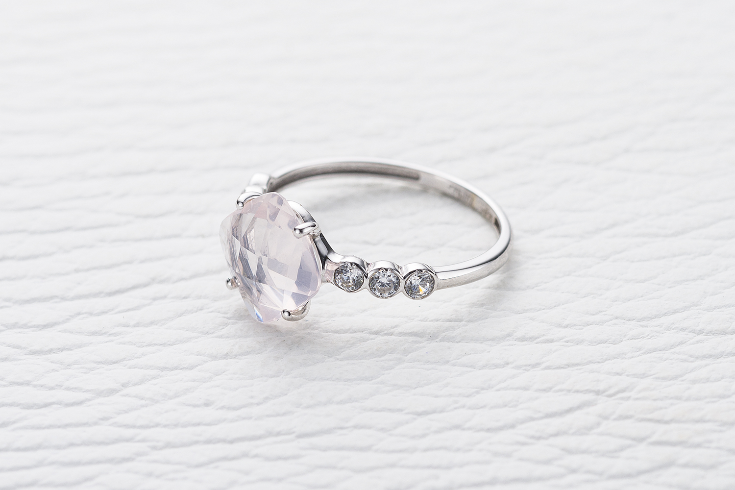 Кварц Розовый натуральный, количество 1 шт., огранка антик-бриолет, размер 8ˣ8 ; Фианит б/цв, количество 6 шт., огранка круг, размер 2 мм