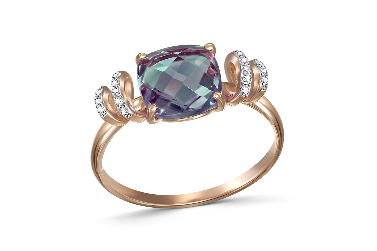 Мастера компании NEWGOLD, приложив всё свое мастерство и искусство, создали для Вас на нашем собственном производстве Кольцо из красного золота с александритом и 16 фианитами.
