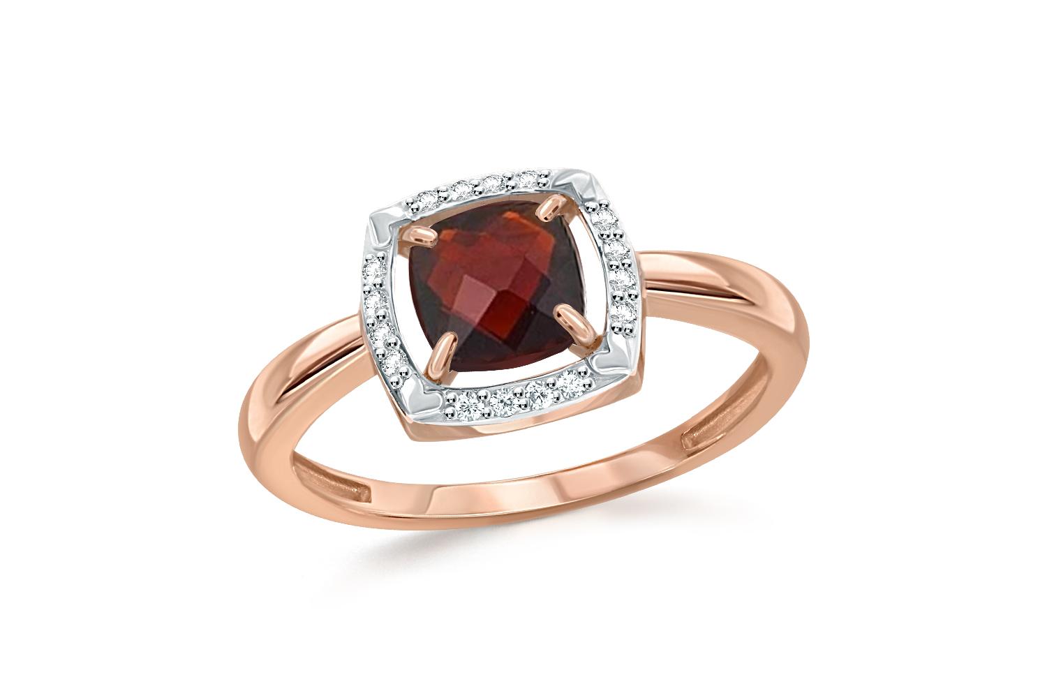 Мастера компании NEWGOLD, приложив всё свое мастерство и искусство, создали для Вас на нашем собственном производстве Кольцо из красного золота с гранатом и 16 фианитами.
