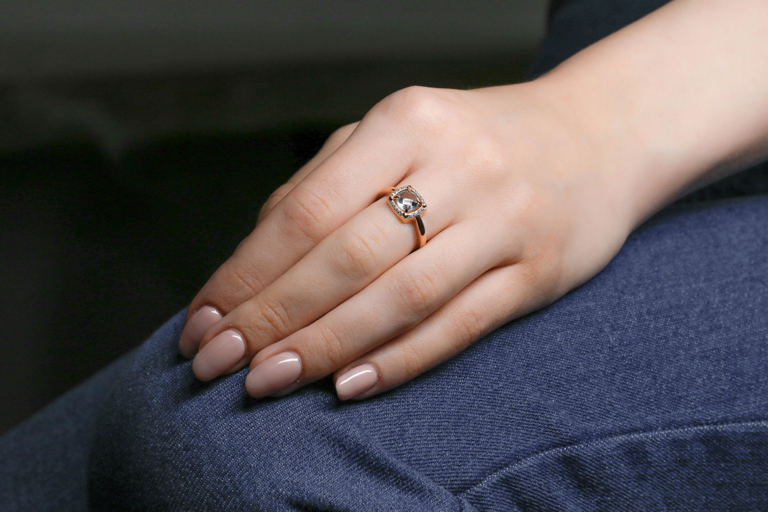 Топаз Sky натуральный, количество 1 шт., огранка антик-бриолет, размер 6ˣ6 ; Фианит б/цв, количество 16 шт., огранка круг, размер 1 мм